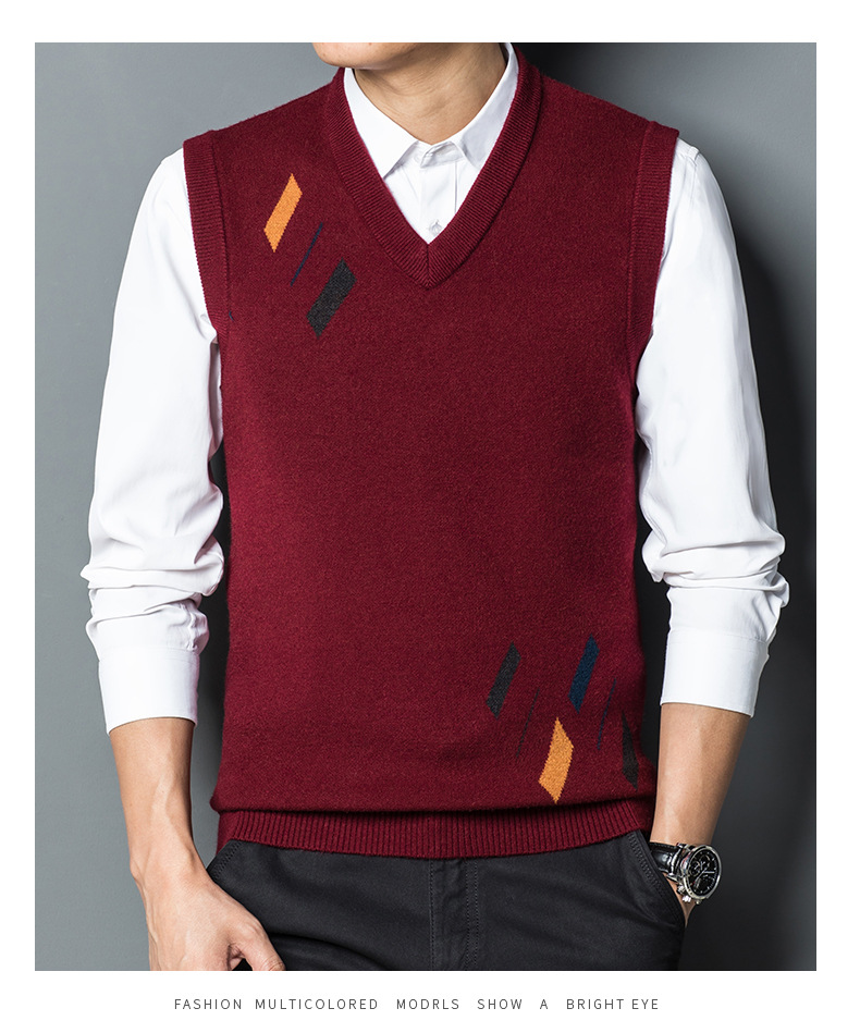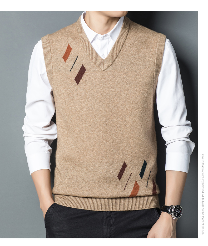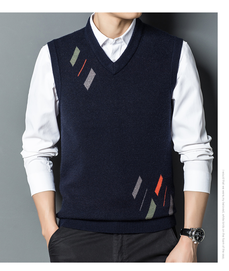 남자의 가을과 겨울 민소매 캐시미어 조끼 착용 양복 조끼 풀오버 조끼 니트 울베이스 셔츠 도매