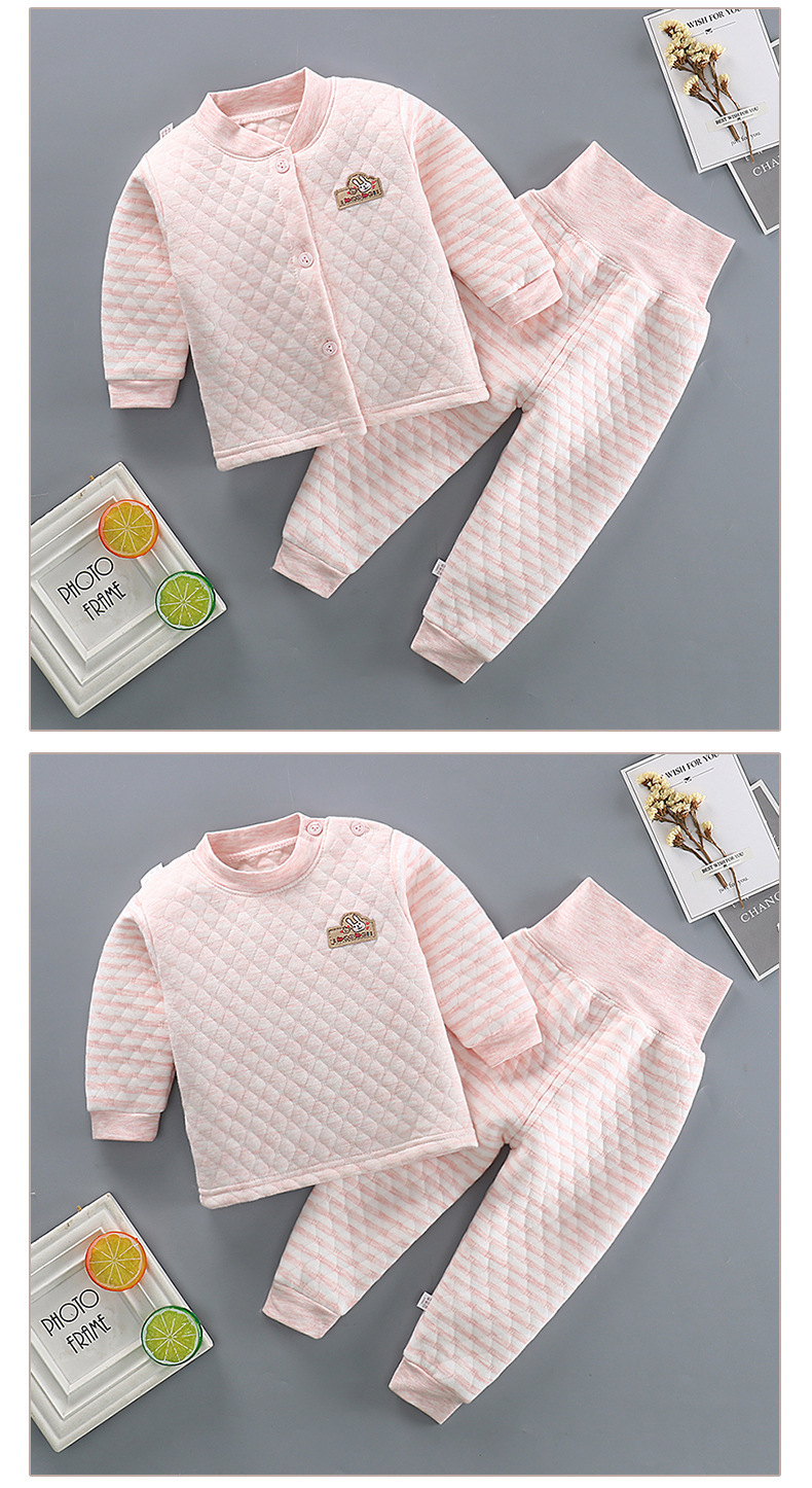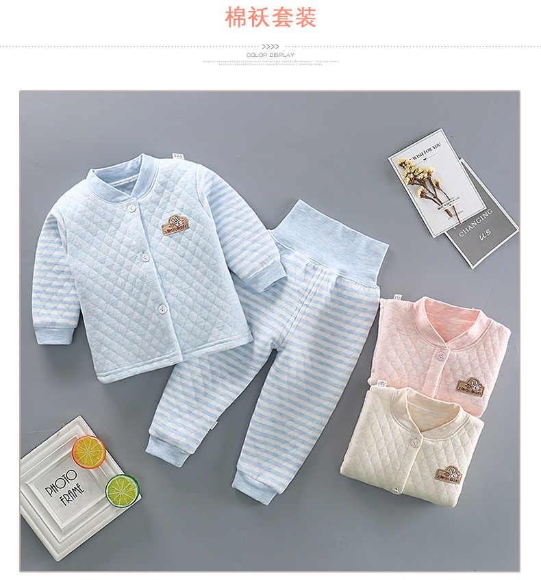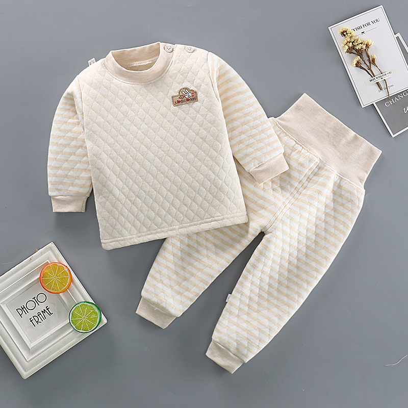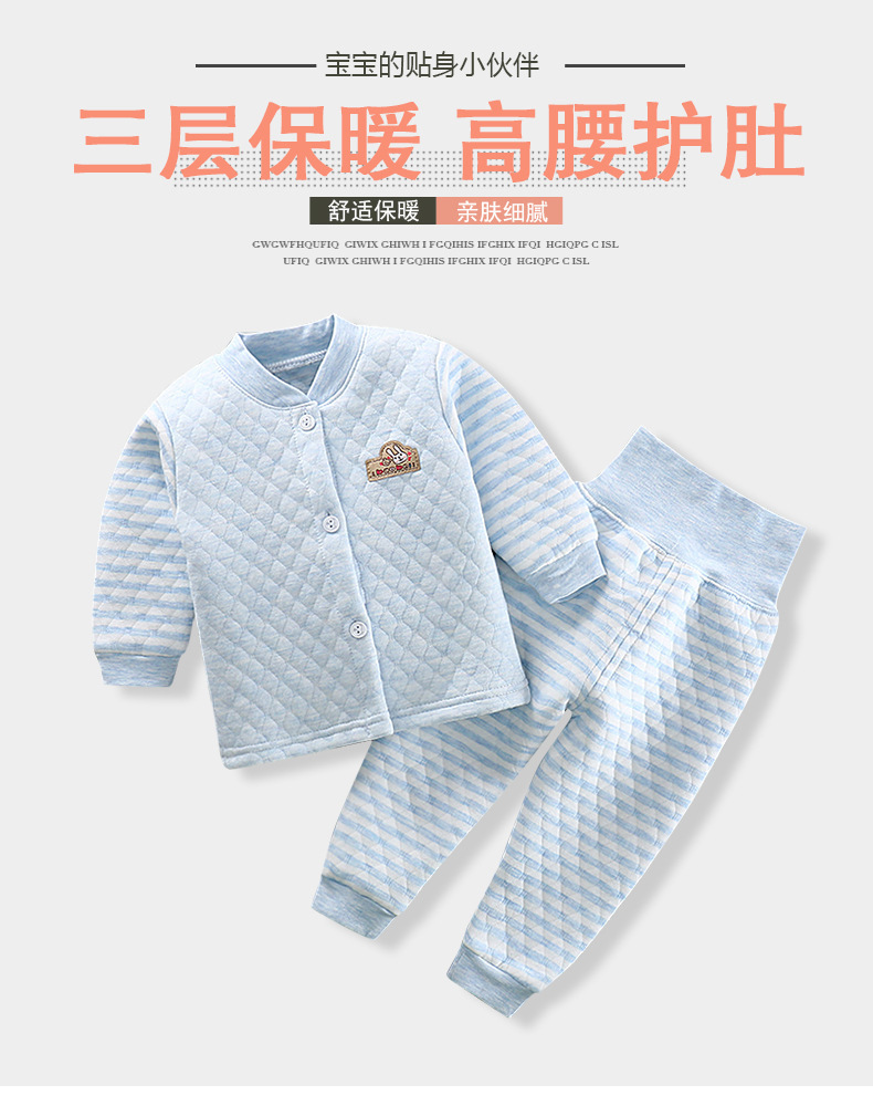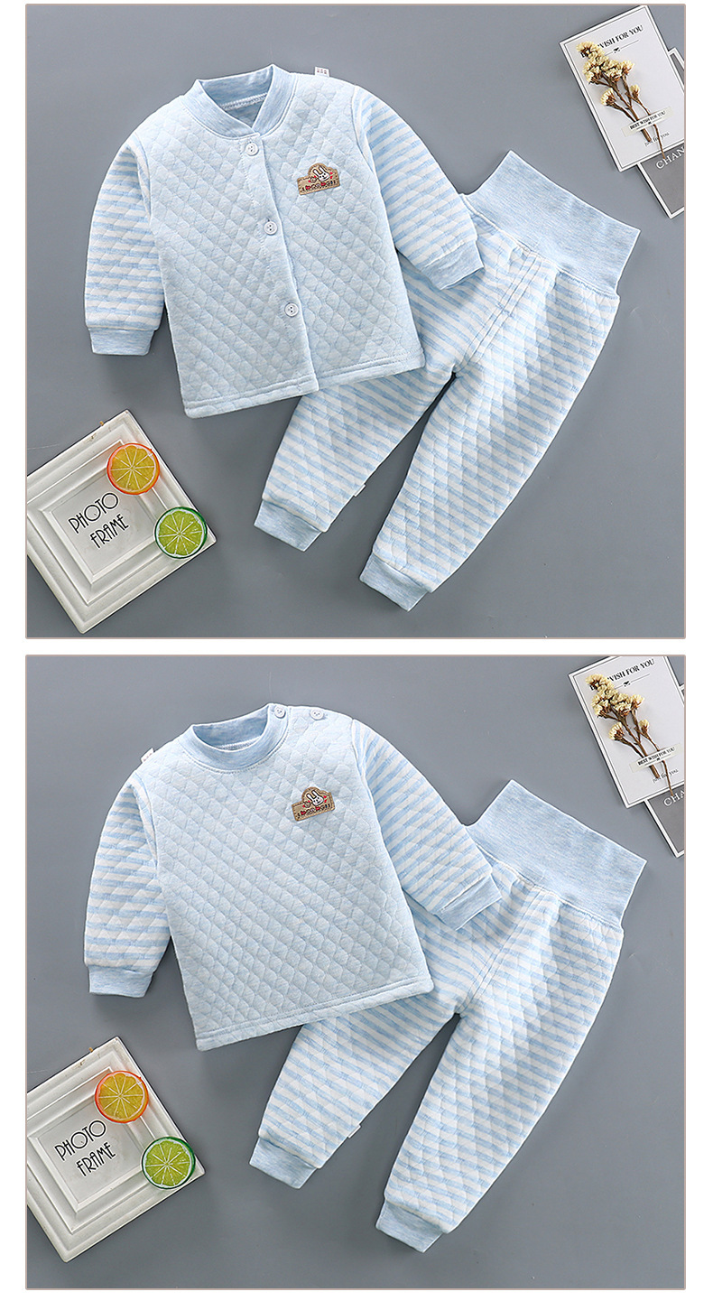 어린이 가을과 겨울 3 층 면 따뜻한 세트 아기 소년과 소녀 높은 허리 배 보호 홈 잠옷 유아 가을 옷