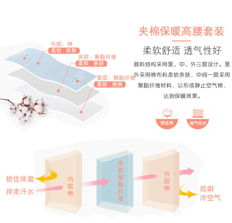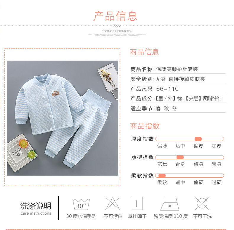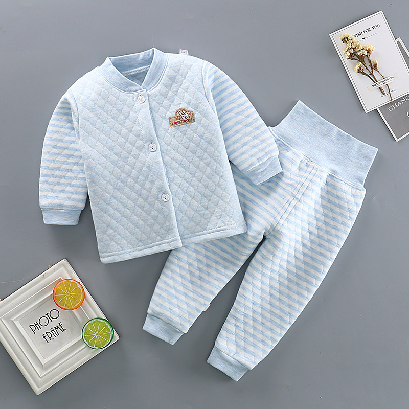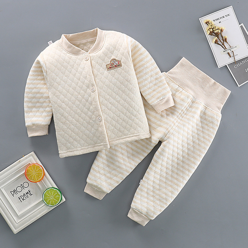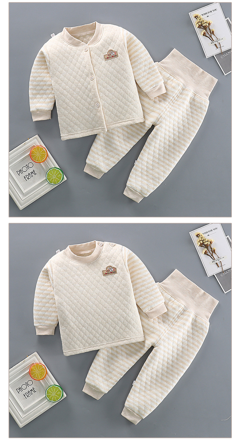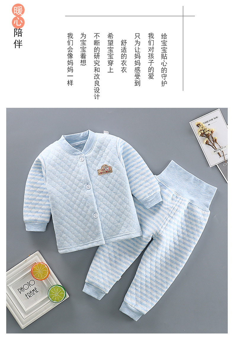 어린이 가을과 겨울 3 층 면 따뜻한 세트 아기 소년과 소녀 높은 허리 배 보호 홈 잠옷 유아 가을 옷