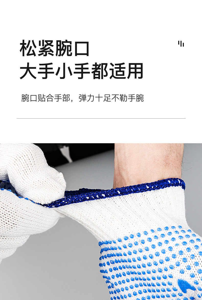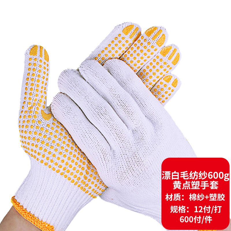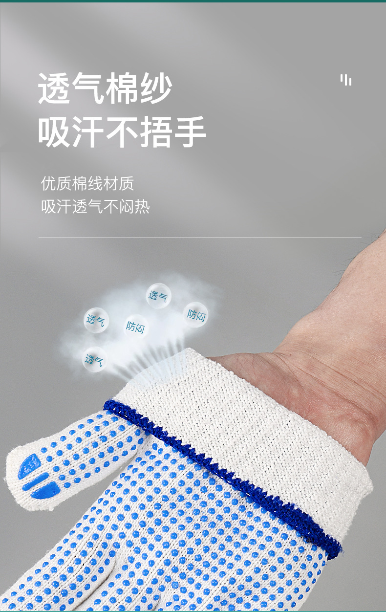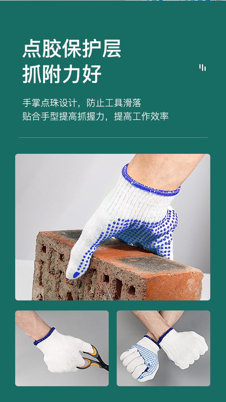공장 직접 표백 면사 블루 포인트 플라스틱 장갑 720g 분배 비즈 미끄럼 방지 노동 보호 장갑 도매스토어 가기