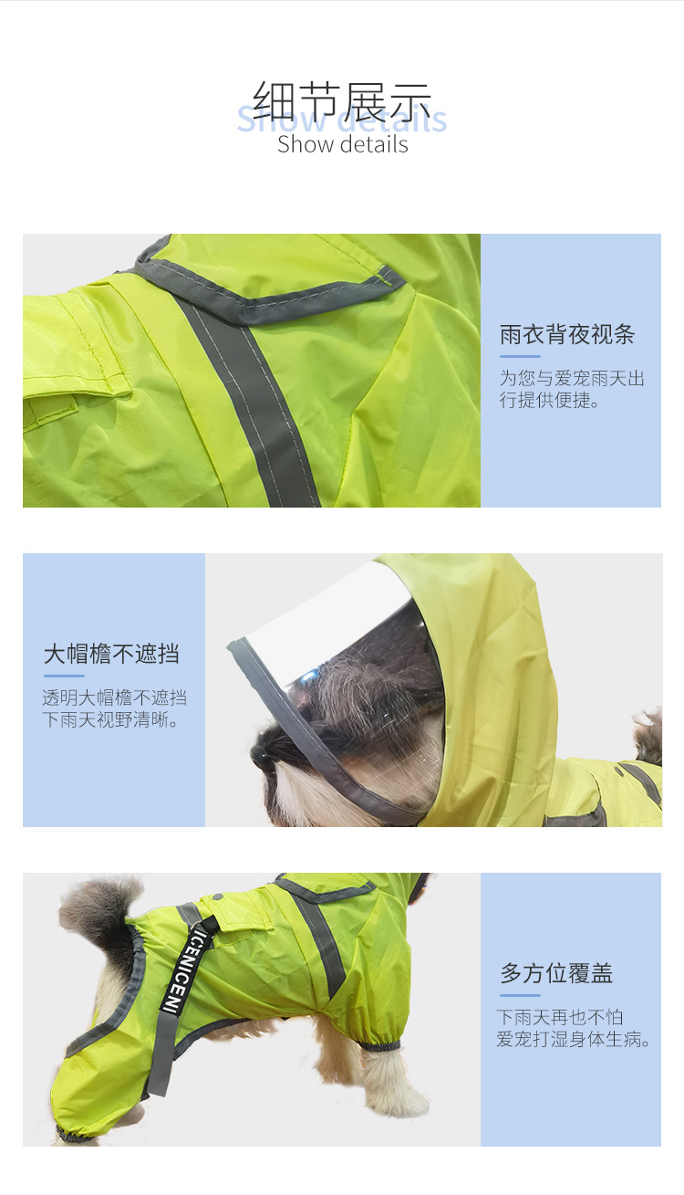 애완동물 큰 모자 챙 비옷 비 방지 4 족 올인클루시브 애완동물 옷 New Dog 반사 비옷 제조 업체 도매스토어 가기