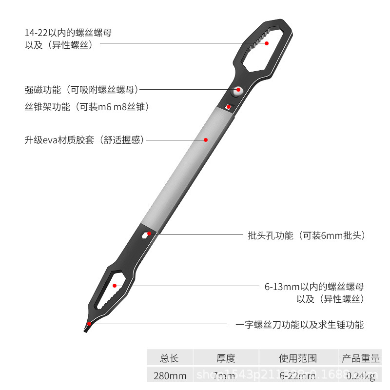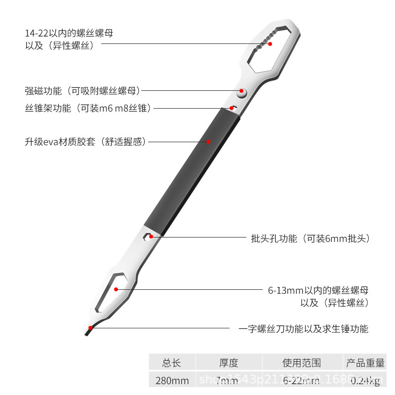• 고무 슬리브 다기능 렌치 6-22mm 실버 도금 업그레이드