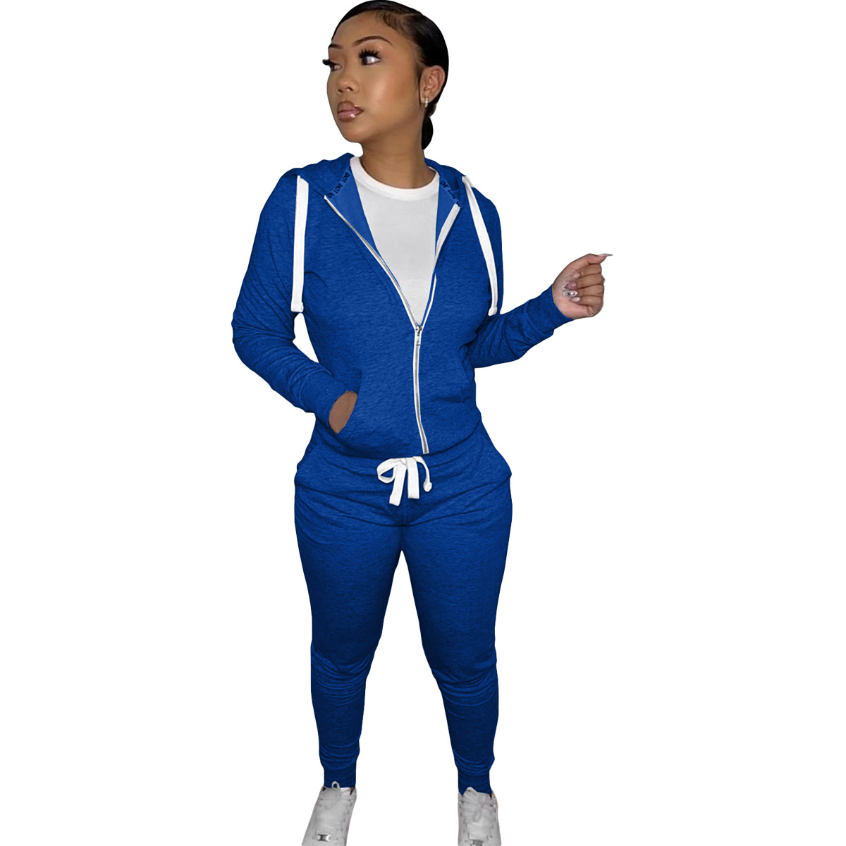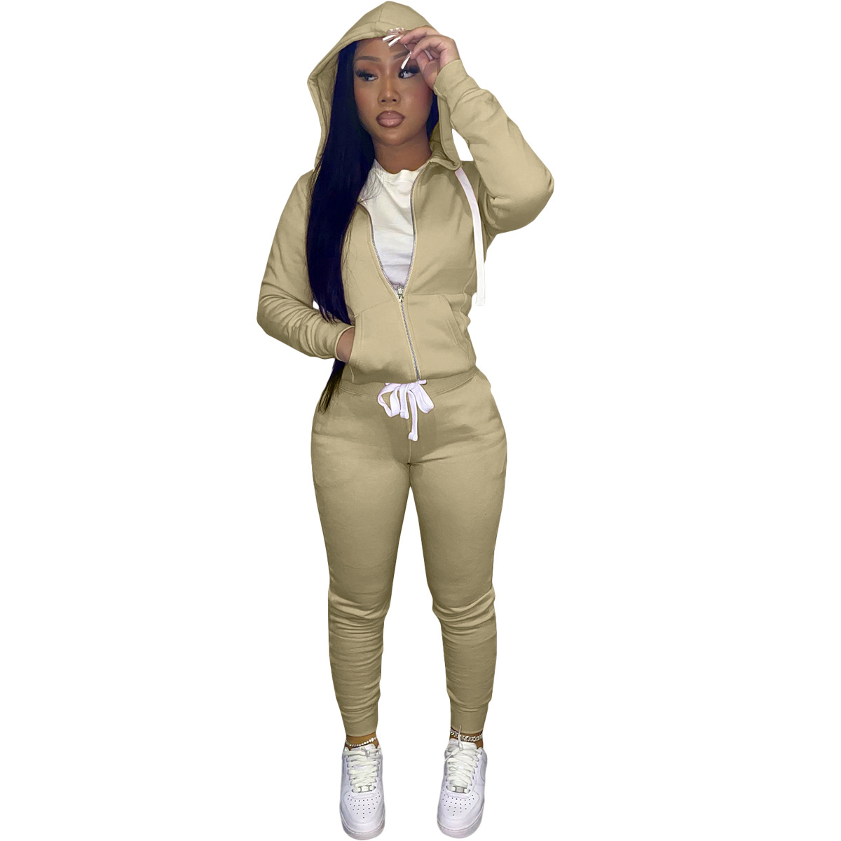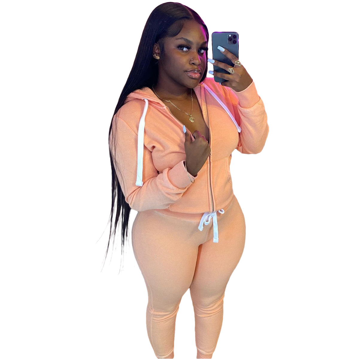 F179 유럽과 미국 여성 의류 가을과 겨울 새로운 기모 스웨터 스포츠 레저 세트 두꺼운 지퍼 후드 투피스 세트
