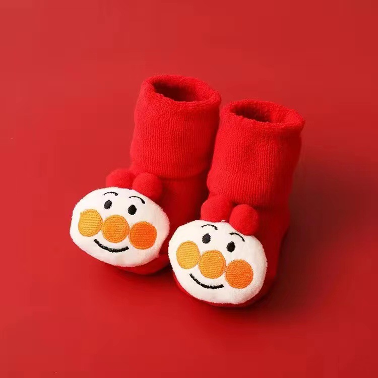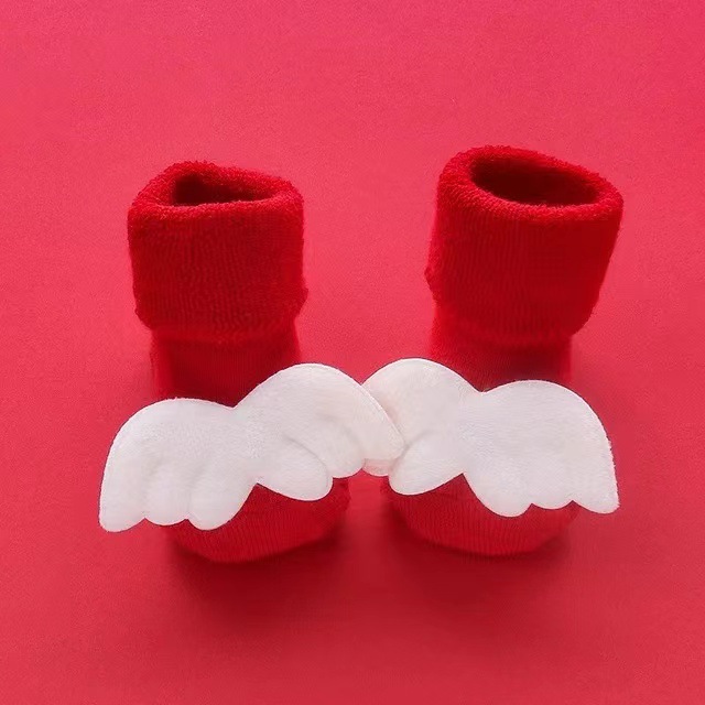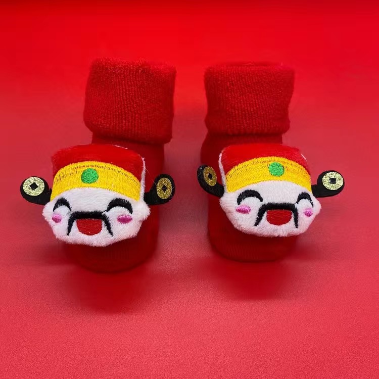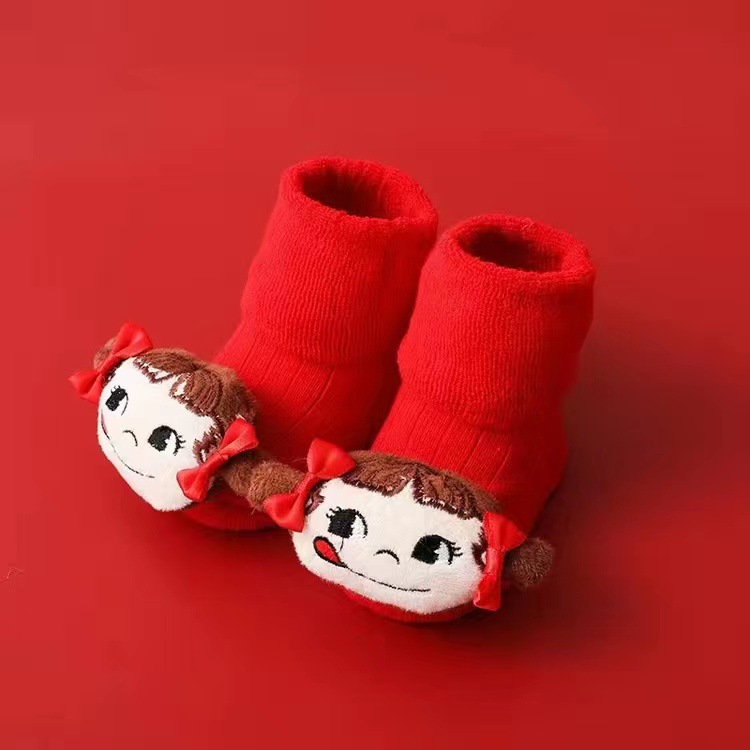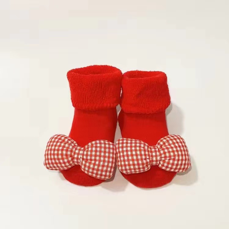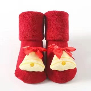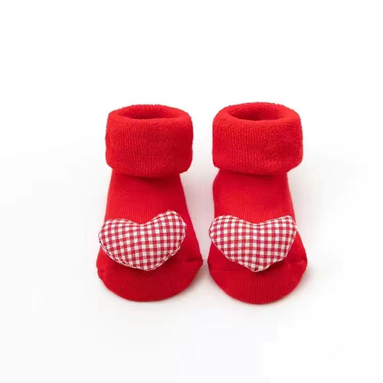 신생아 양말, 가을 겨울 테리 양말, 아기의 두꺼운 발가락이 없는 유아 양말, 빨간색 바닥 양말, 새해 양말