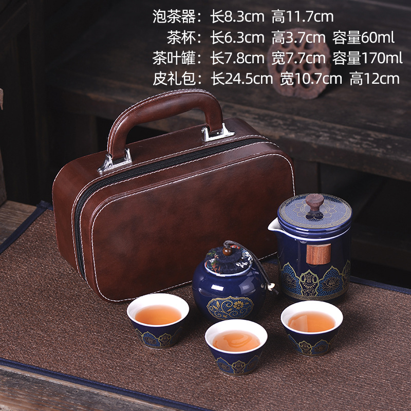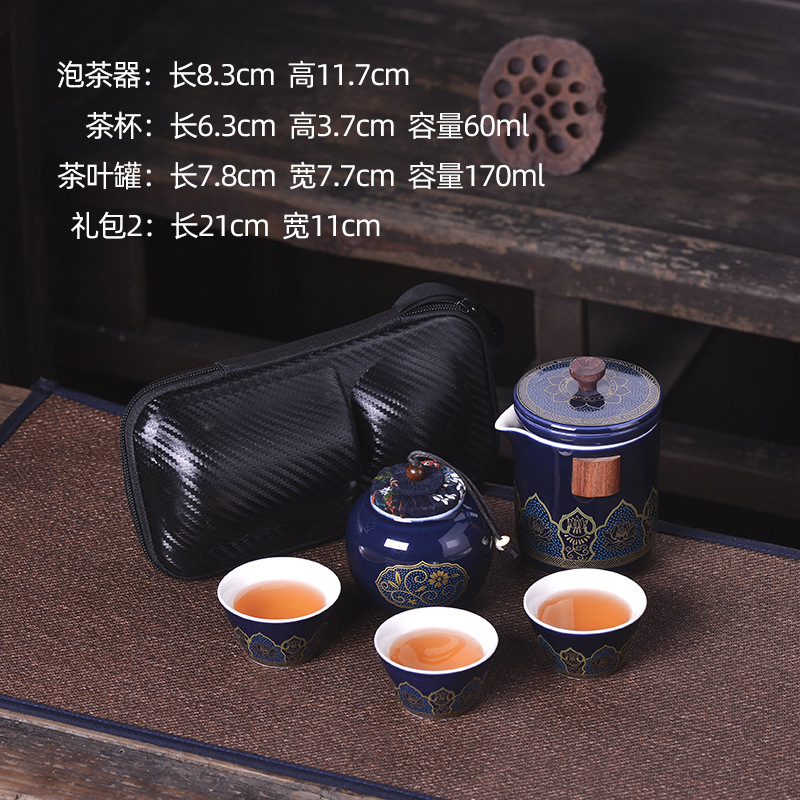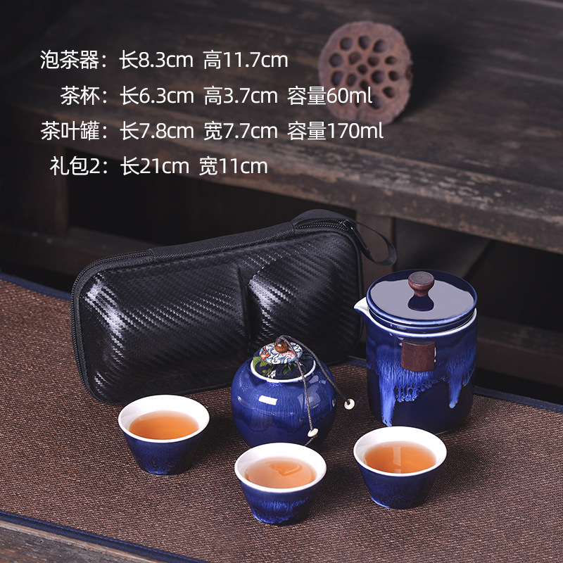 세라믹 휴대용 여행 차 세트 휴대용 야외 가방 익스프레스 컵 한 냄비 세 컵 쿵푸 차 냄비스토어 가기