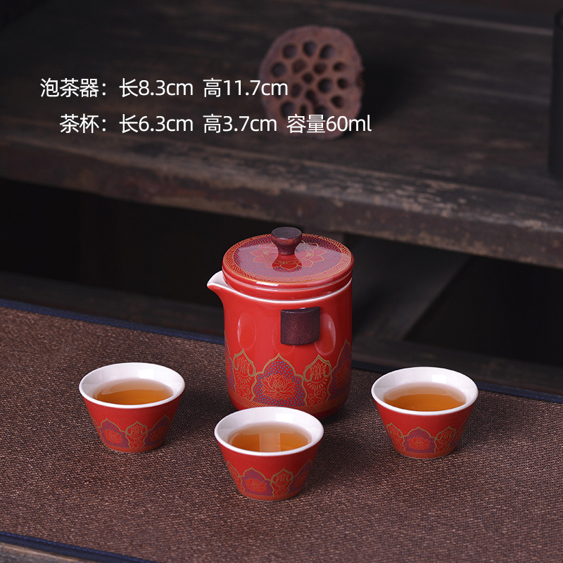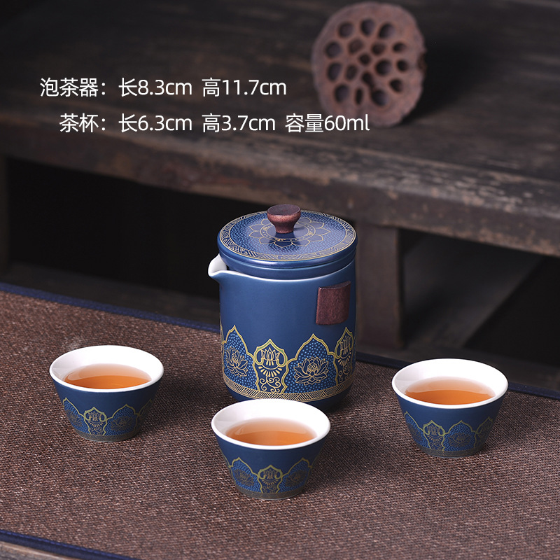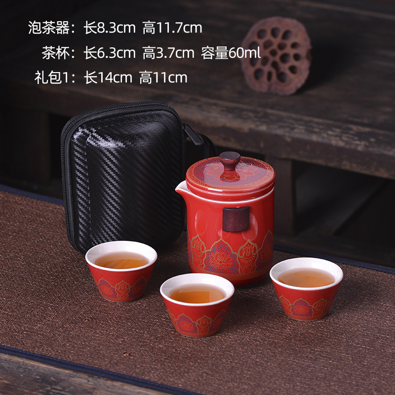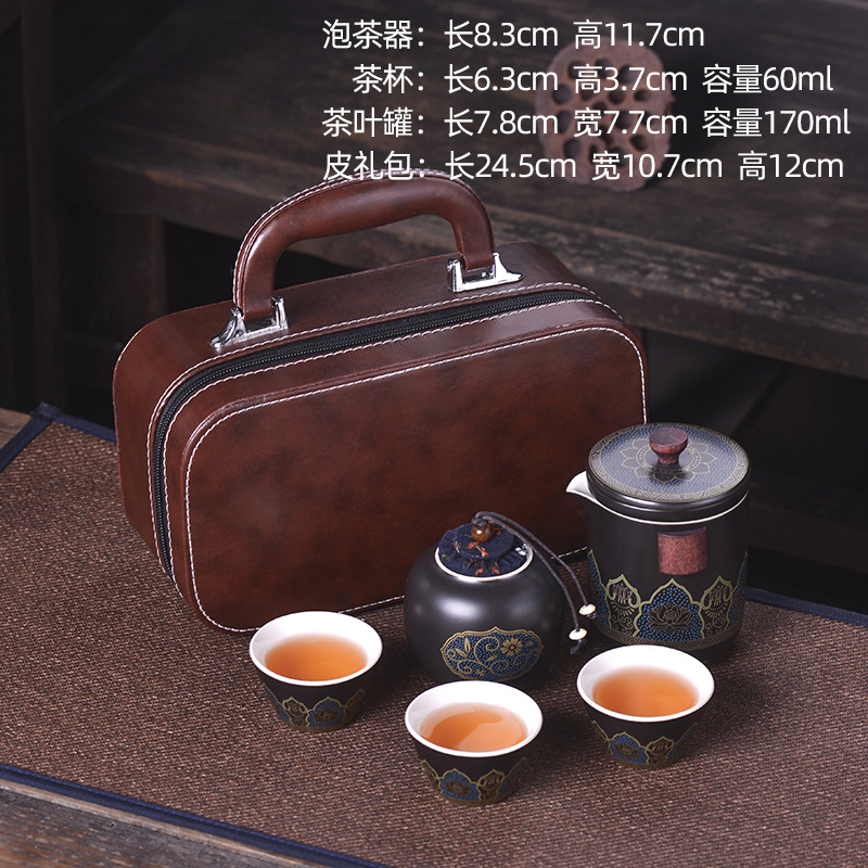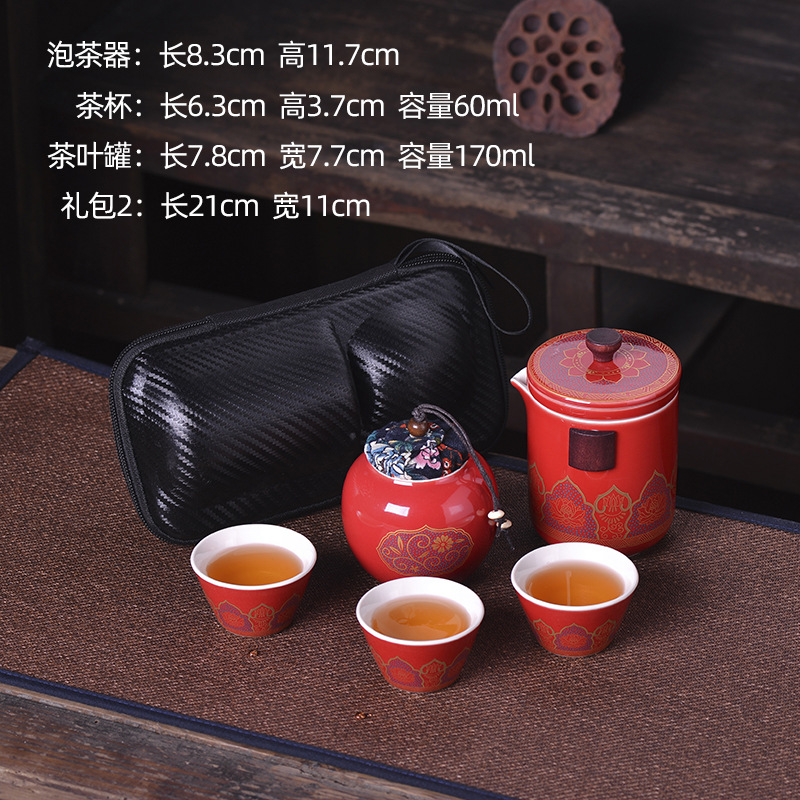 세라믹 휴대용 여행 차 세트 휴대용 야외 가방 익스프레스 컵 한 냄비 세 컵 쿵푸 차 냄비