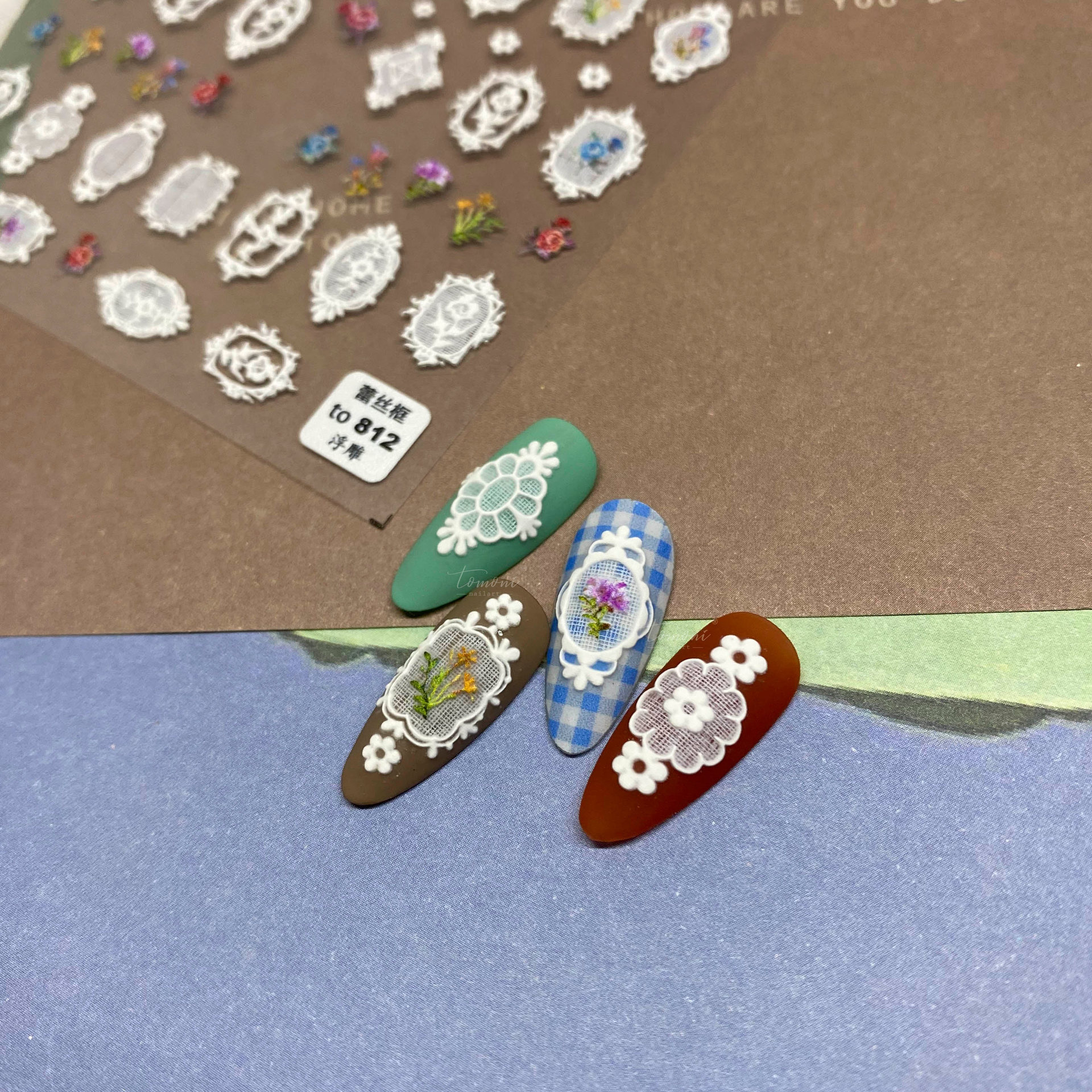 일본 tomoni 귀여운 네일 아트 스티커 5d 3 차원 중공 신부 웨딩 갑옷 작은 레이스 프레임 거울 프레임 빈티지