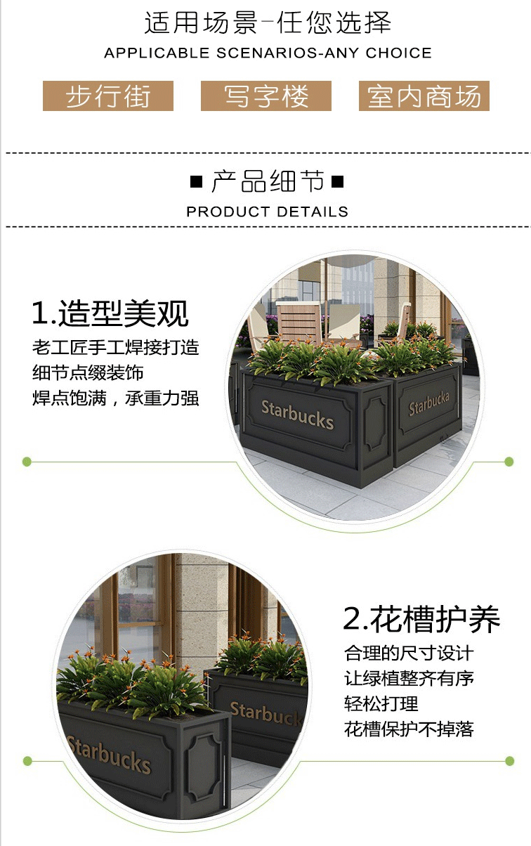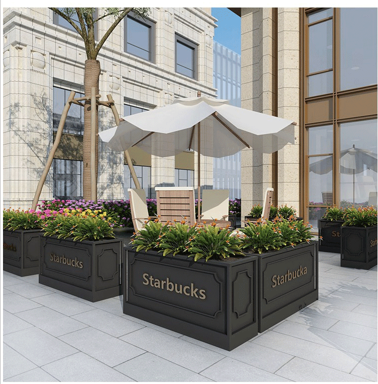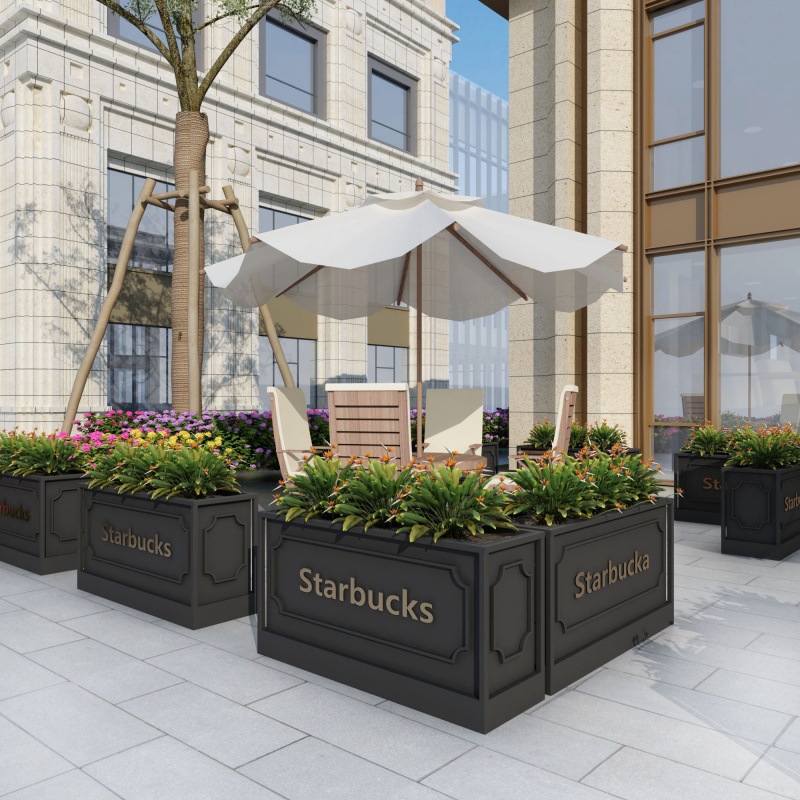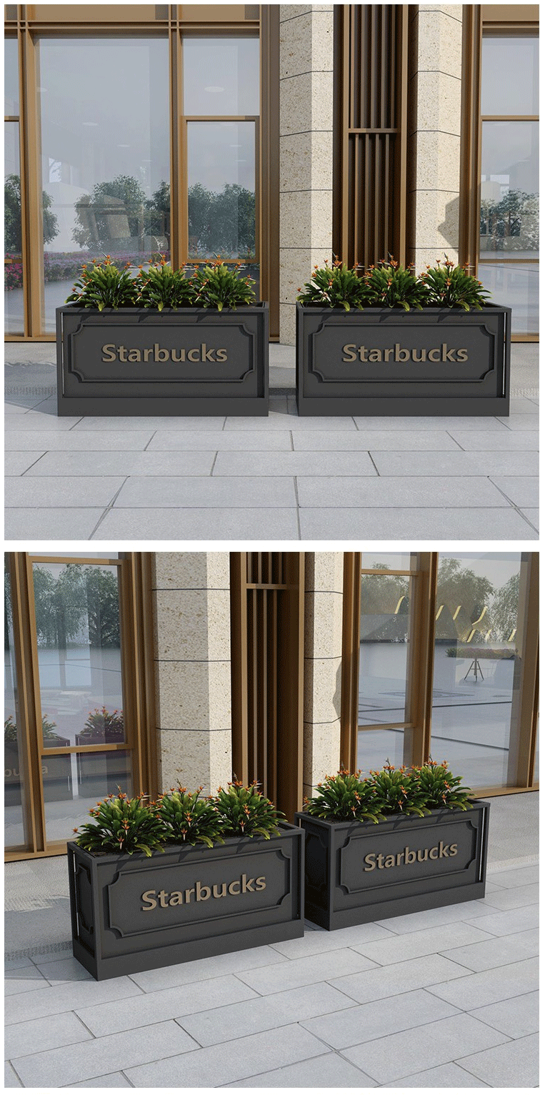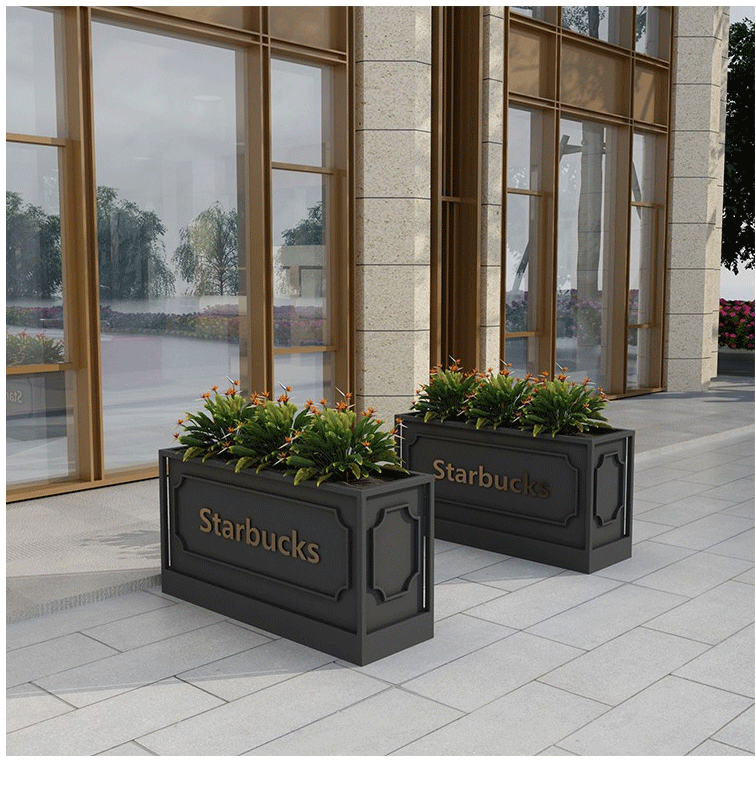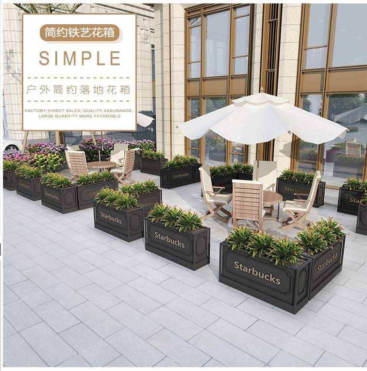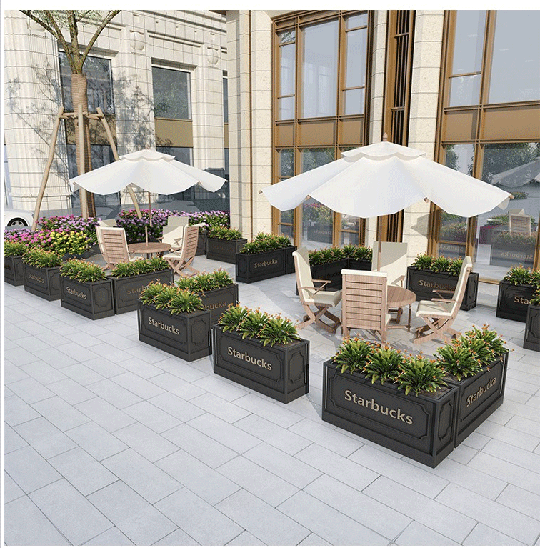 북유럽 영업부 야외 심기 화단 상업용 거리 광장 직사각형 철 꽃 홈 야외 풍경 꽃 상자스토어 가기