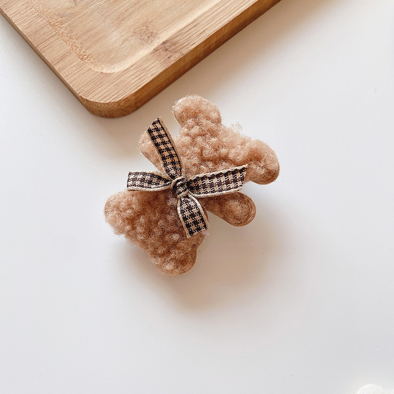 가을 겨울 밀크커피색 털곰돌이 머리핀, 소녀 감성 만점, 다용도 털머리핀, 천으로 감싼 어린이 헤어 액세서리, 앞머리용