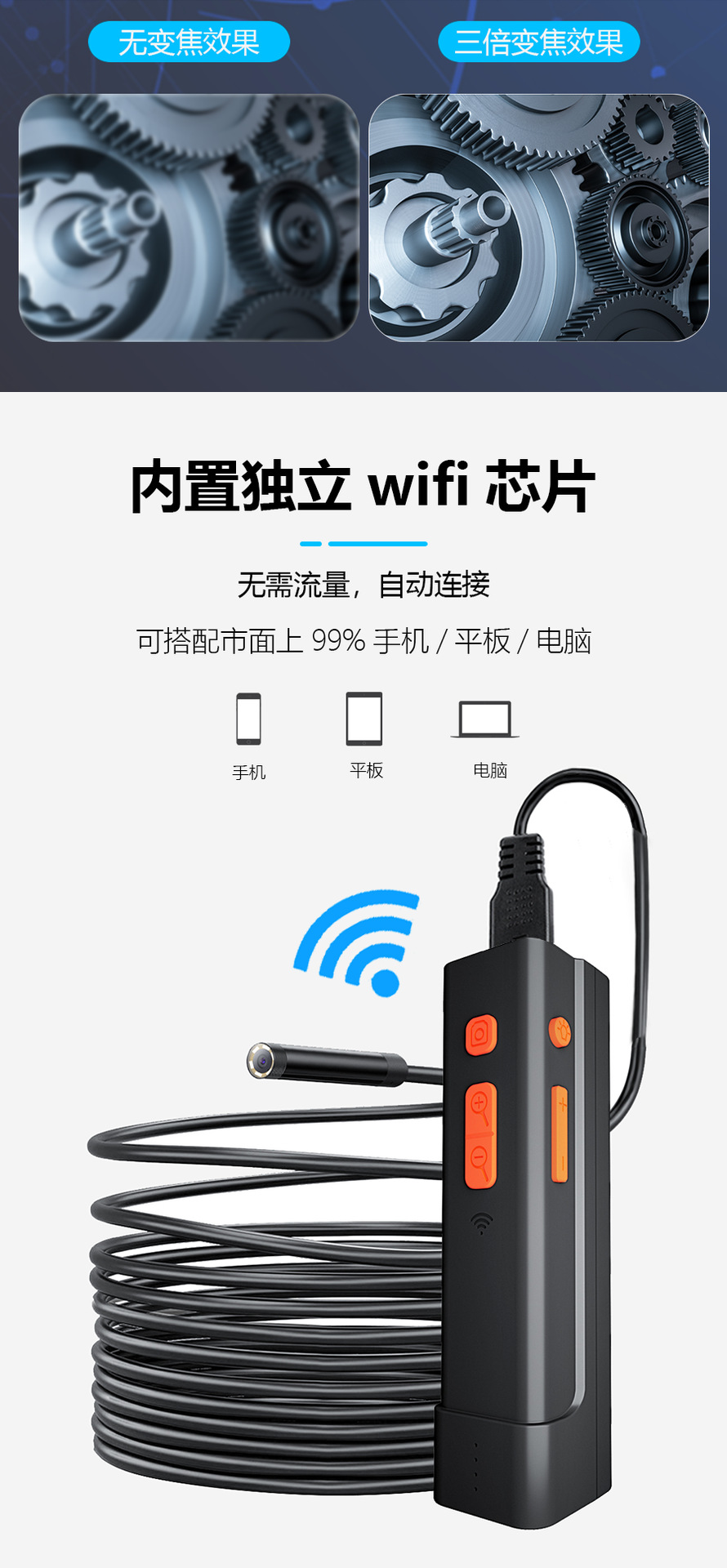 Wifi 산업용 파이프 라인 내시경 휴대용 내시경 8mm HD 1080 방수 내시경스토어 가기