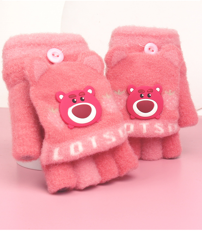 • 70022 딸기곰 3D 인형 스타일 반손가락 장갑