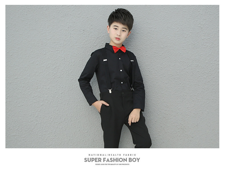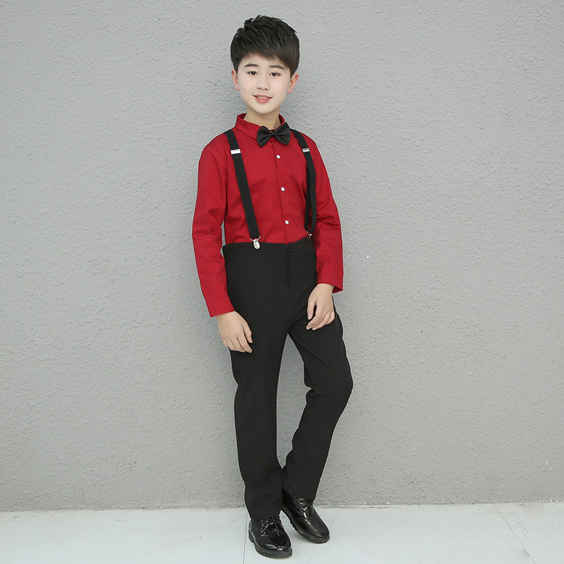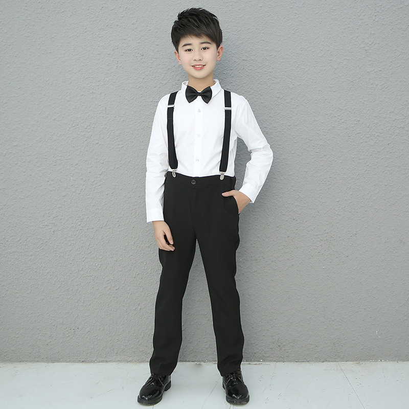어린이 의상 세트 코러스 성능 세트 셔츠 소년의 긴팔 흰색 셔츠 기모 두껍게