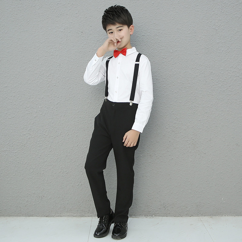 어린이 의상 세트 코러스 성능 세트 셔츠 소년의 긴팔 흰색 셔츠 기모 두껍게스토어 가기