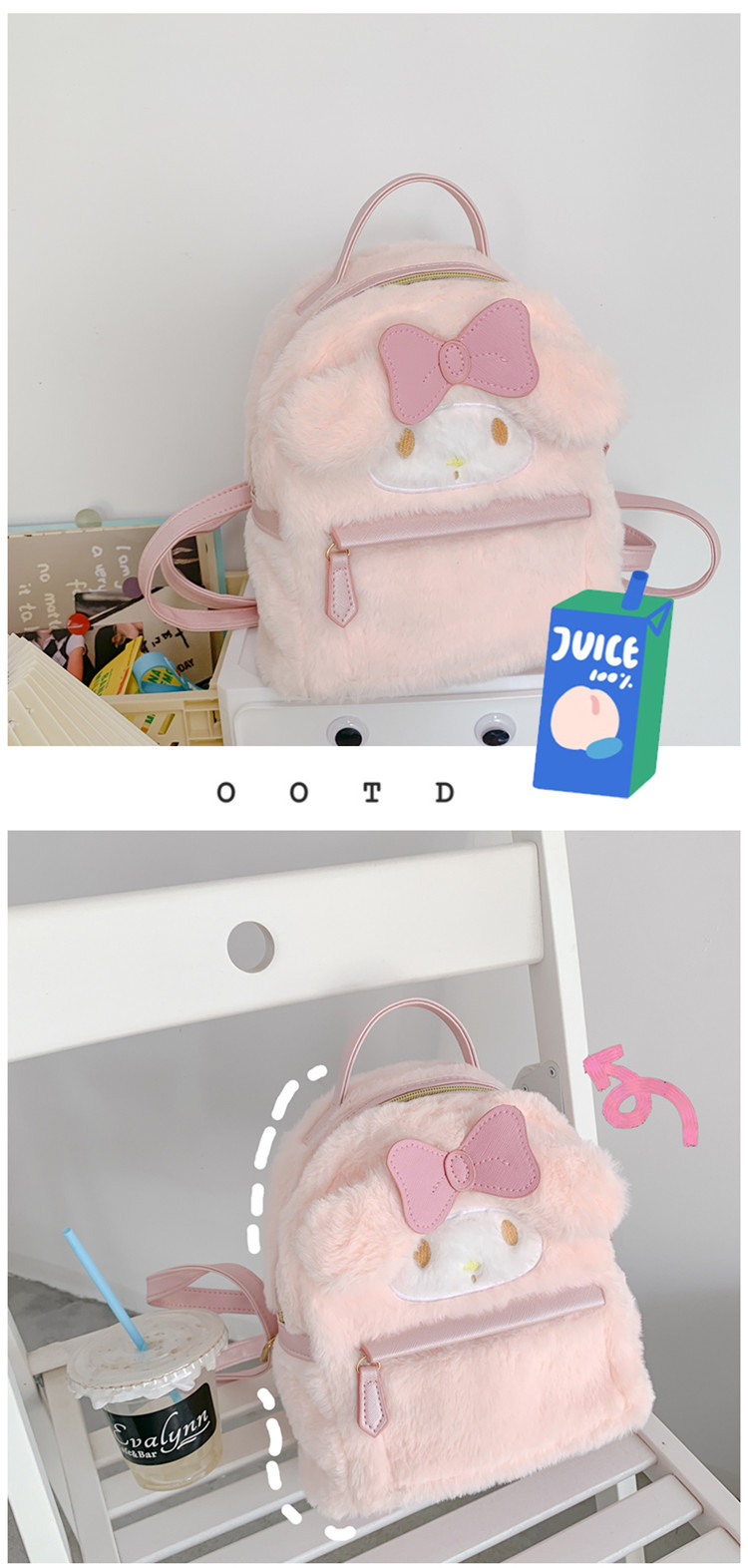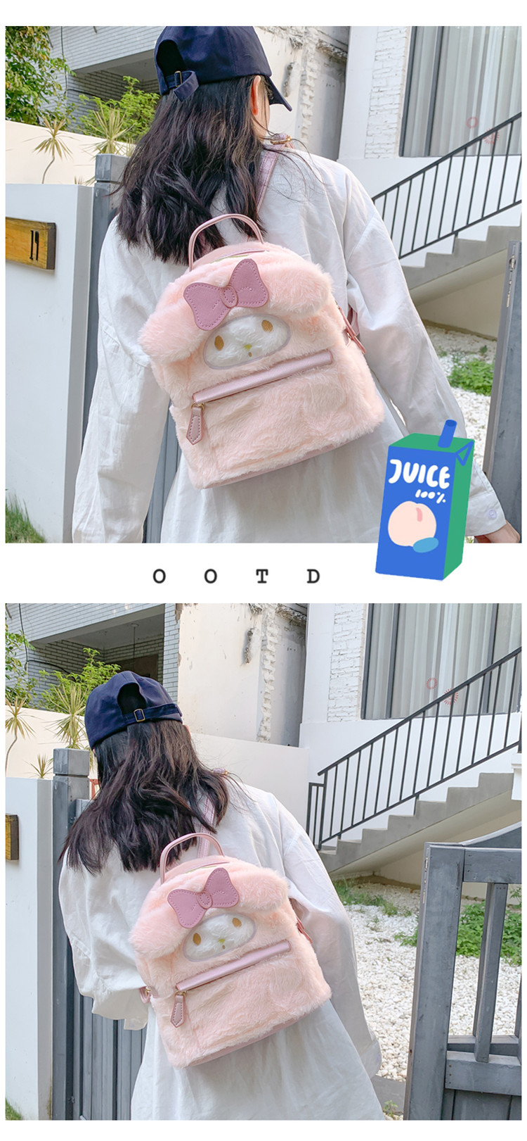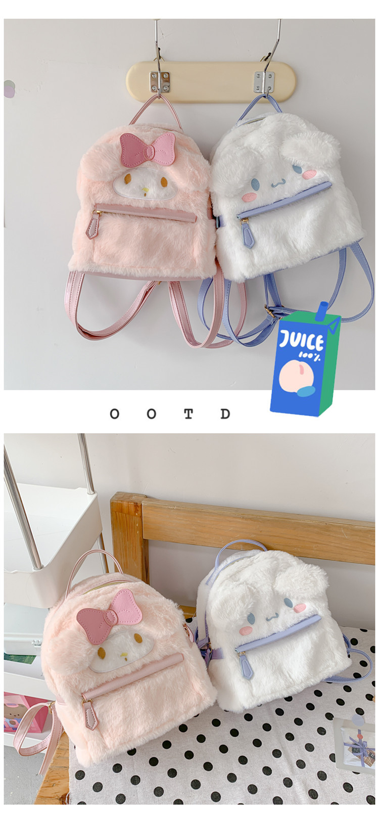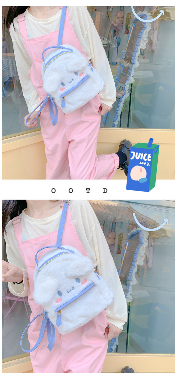 일본 jk 로리타 스타일 귀여운 토끼 어린이 어깨 강아지 털이 더블 배낭스토어 가기