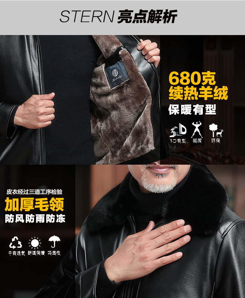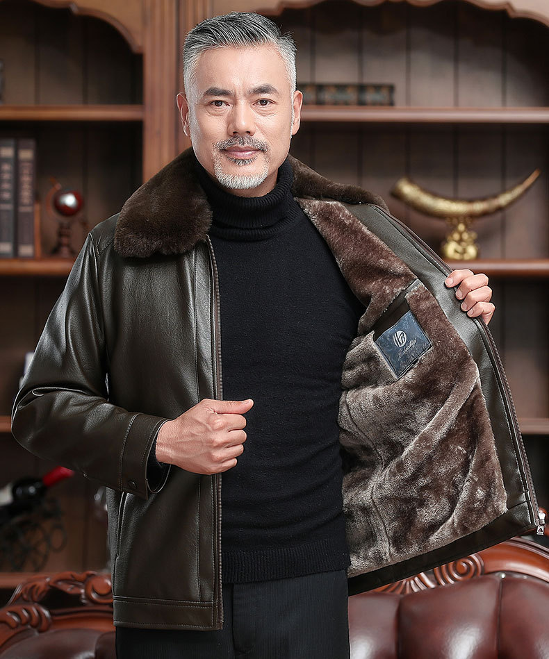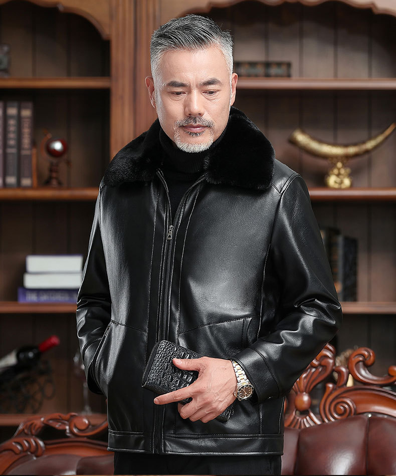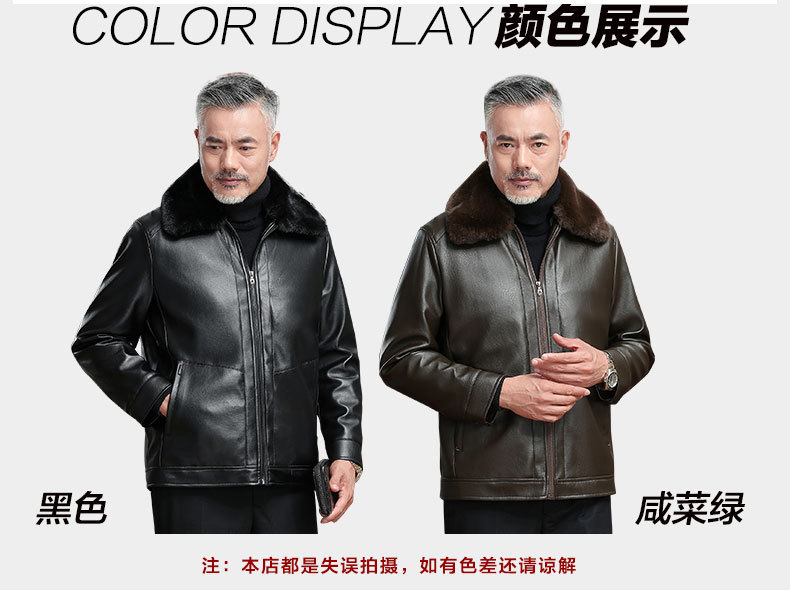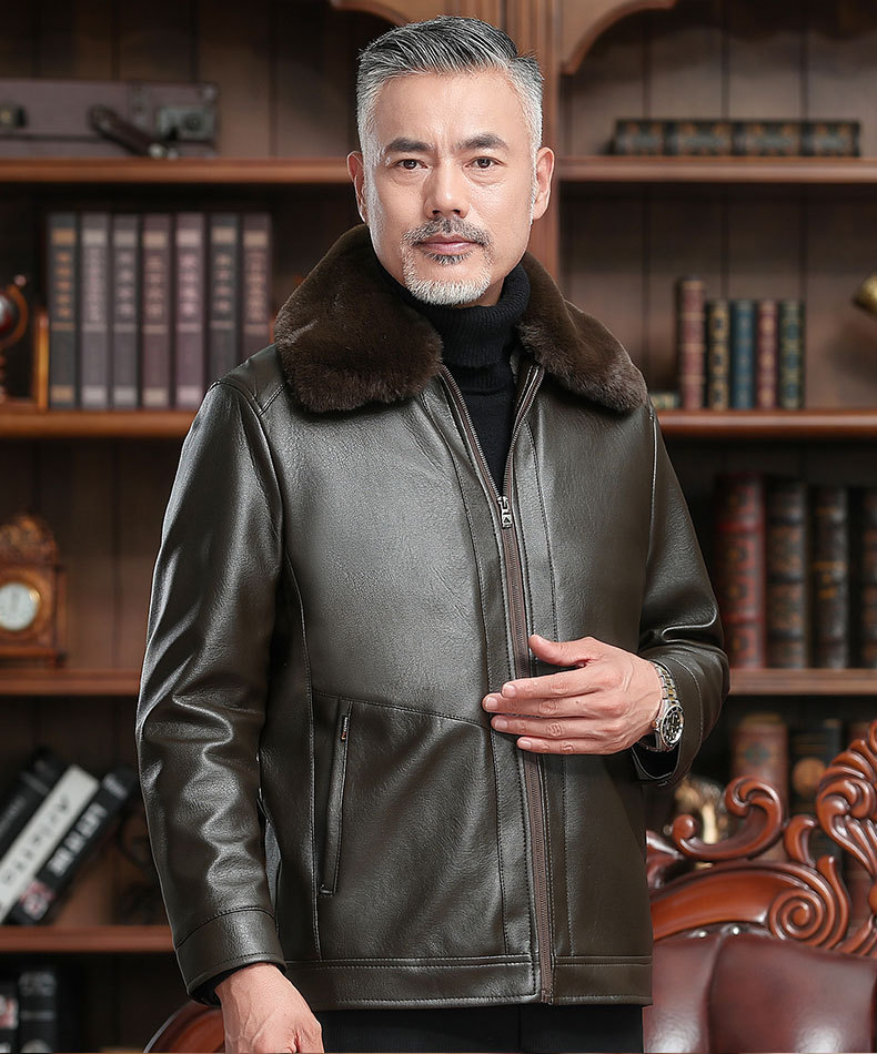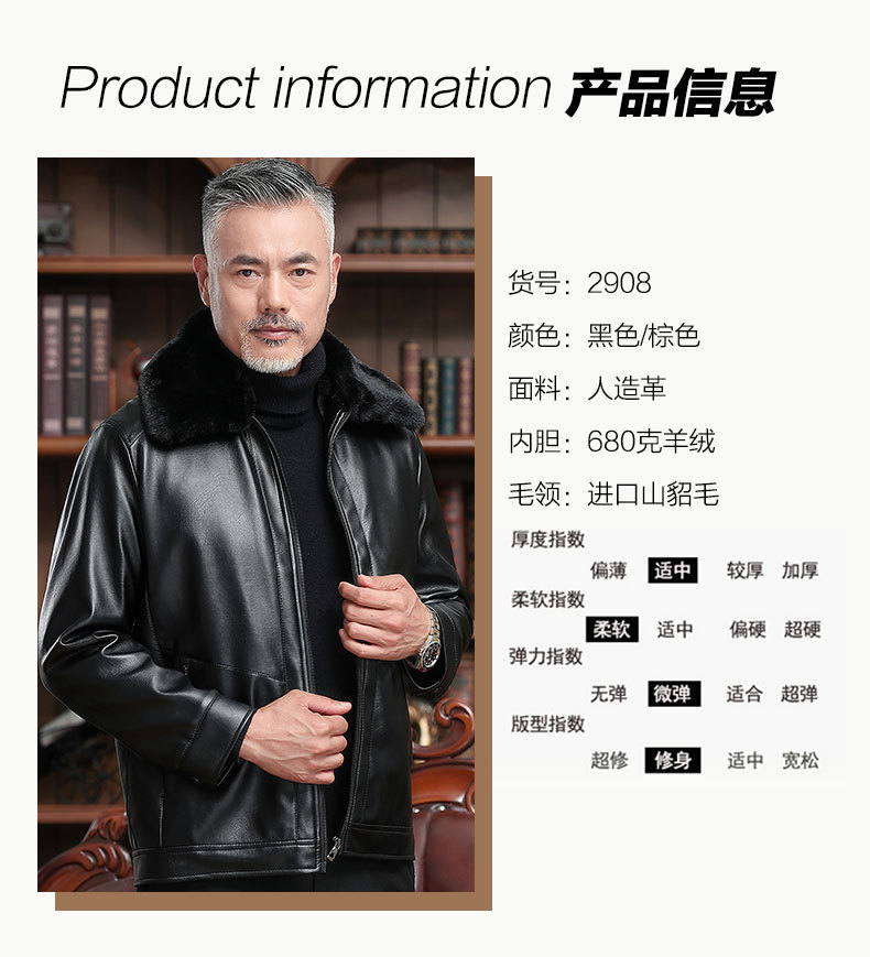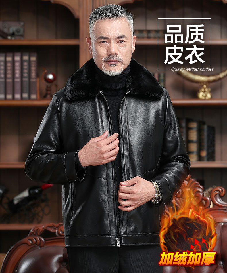 남성 가죽 자켓 가을 겨울 중년 및 노인 모피 칼라 남성 코트 아빠 가죽 자켓 비즈니스 의류 두껍고 따뜻함스토어 가기