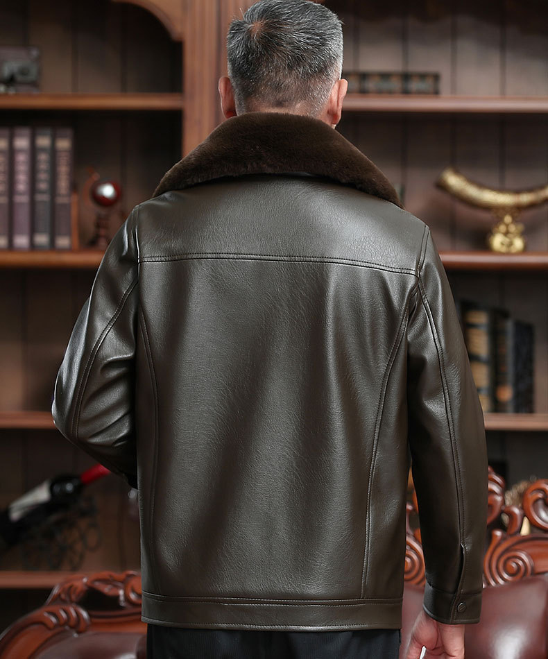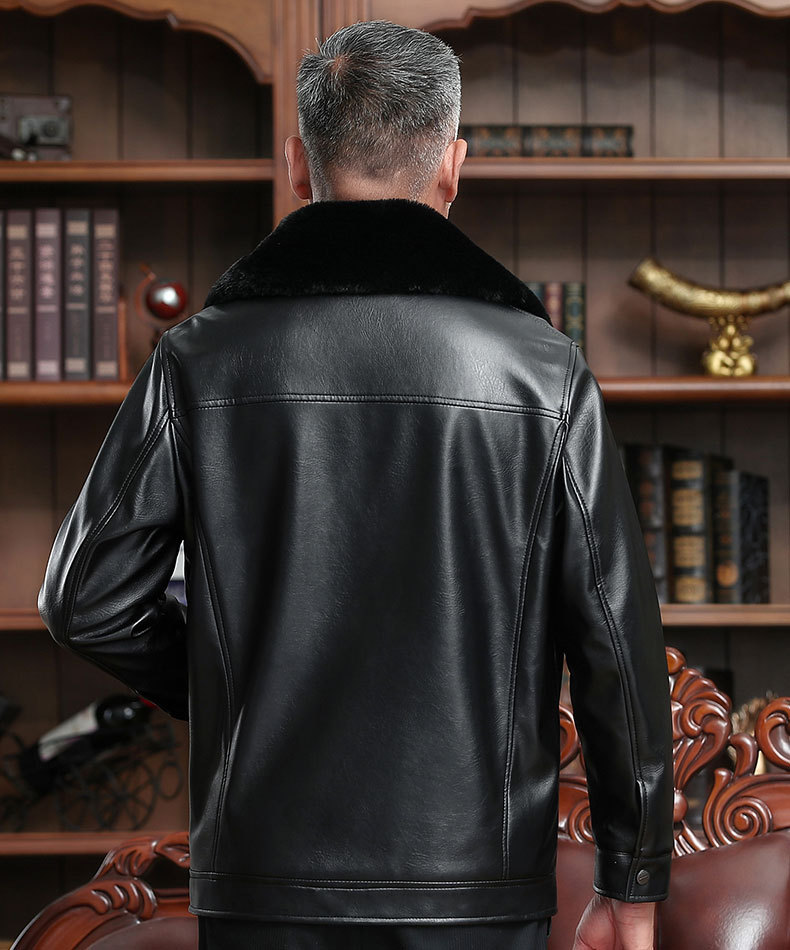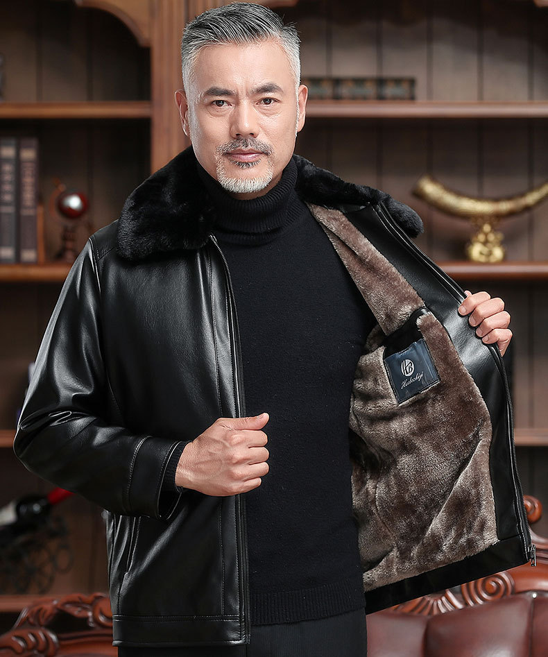 남성 가죽 자켓 가을 겨울 중년 및 노인 모피 칼라 남성 코트 아빠 가죽 자켓 비즈니스 의류 두껍고 따뜻함