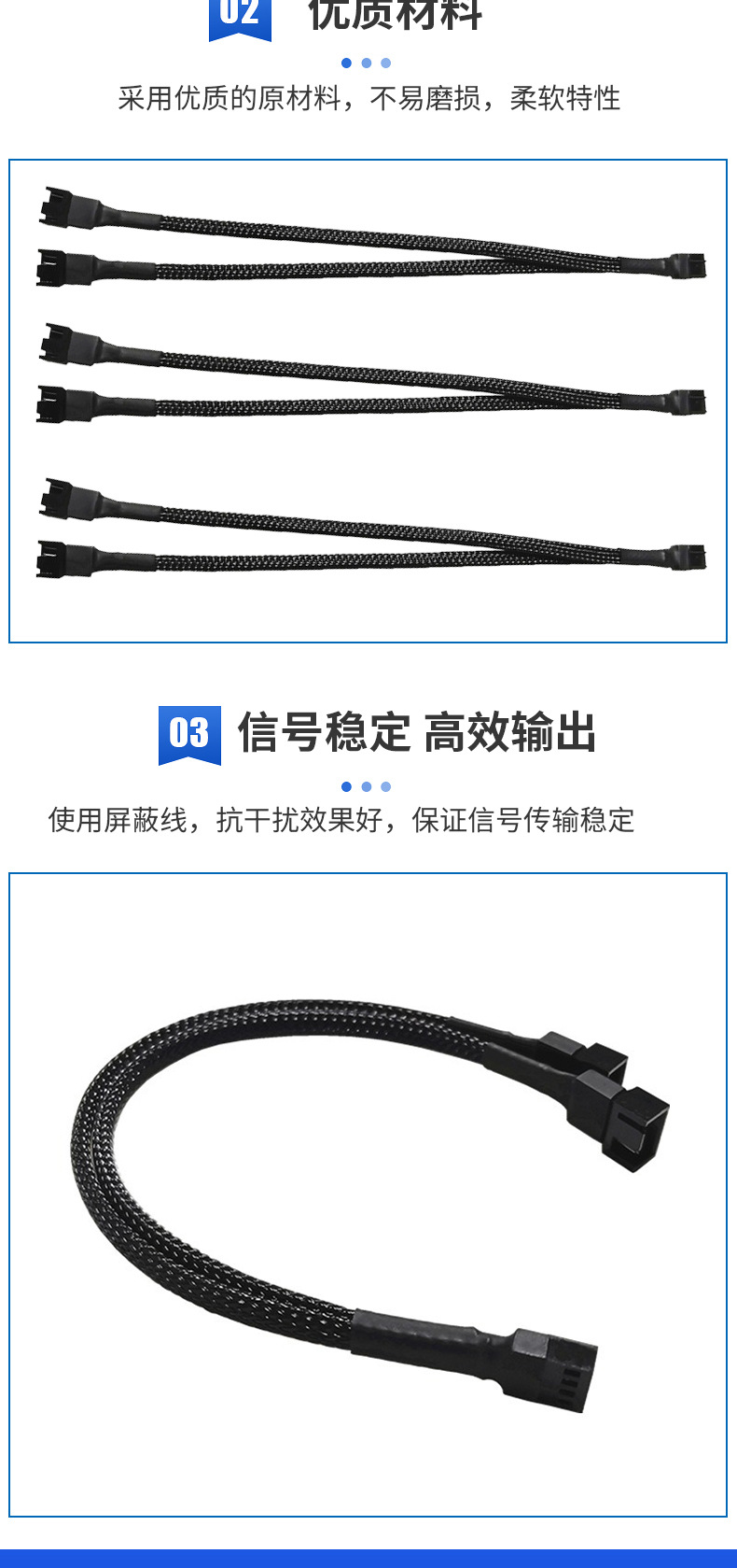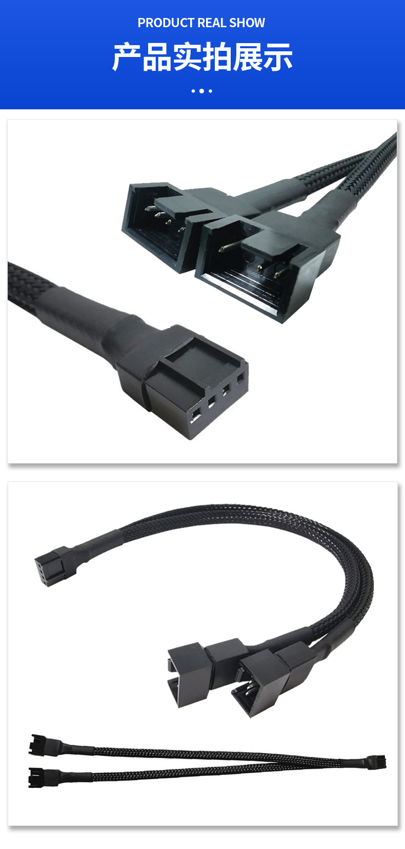 【产品接口】:一端主板小4pin接头,另两端是风扇小4Pin接口