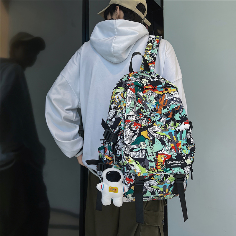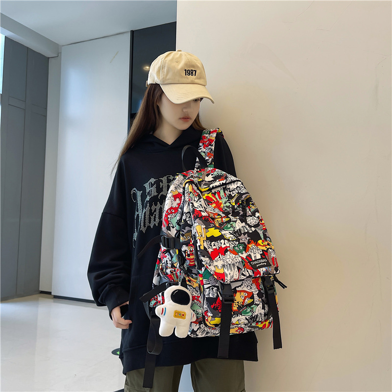 대용량 책가방 개인화 된 낙서 일본 캐주얼 배낭 남성과 여성의 패션 브랜드 스포츠 고등학교 패션 배낭 가방