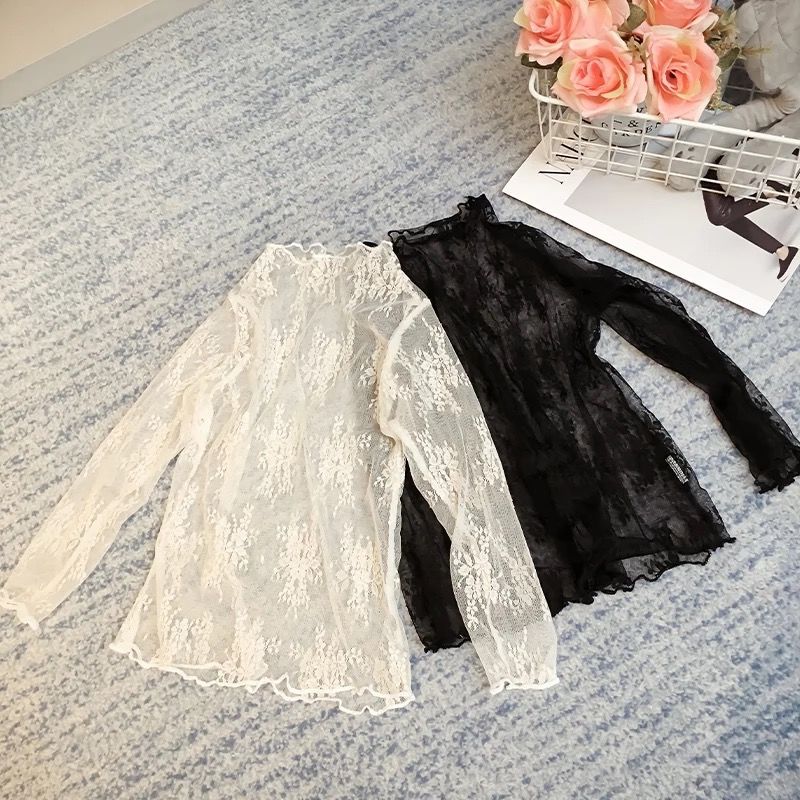 여아 레이스베이스 셔츠 봄 가을 긴팔 티셔츠 아기 소녀 어린이 얇은 메쉬 탑 새로운 스타일 내부 신선한 티셔츠스토어 가기
