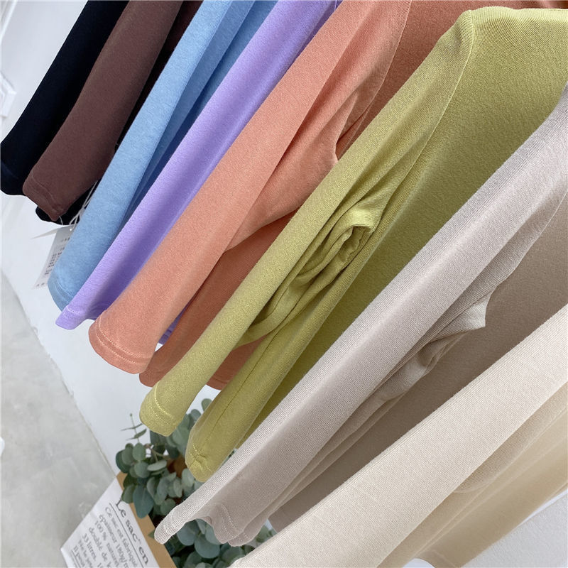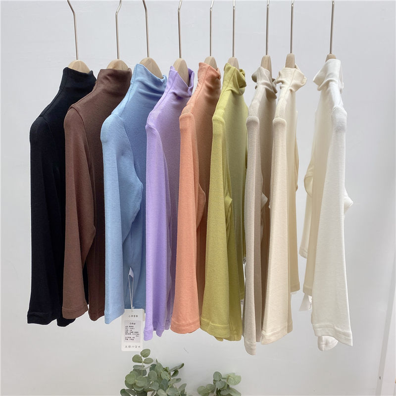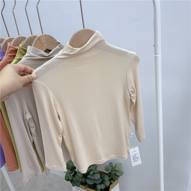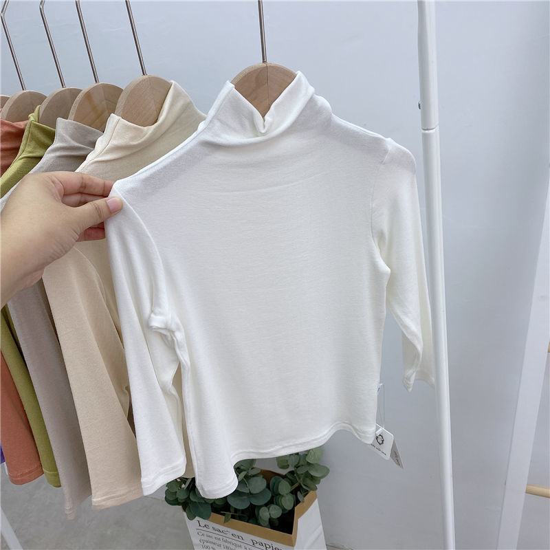 어린이 하프 하이 넥 모달베이스 셔츠 봄 얇은 긴팔 티셔츠 소년과 소녀 아기 단색 탑 트렌디