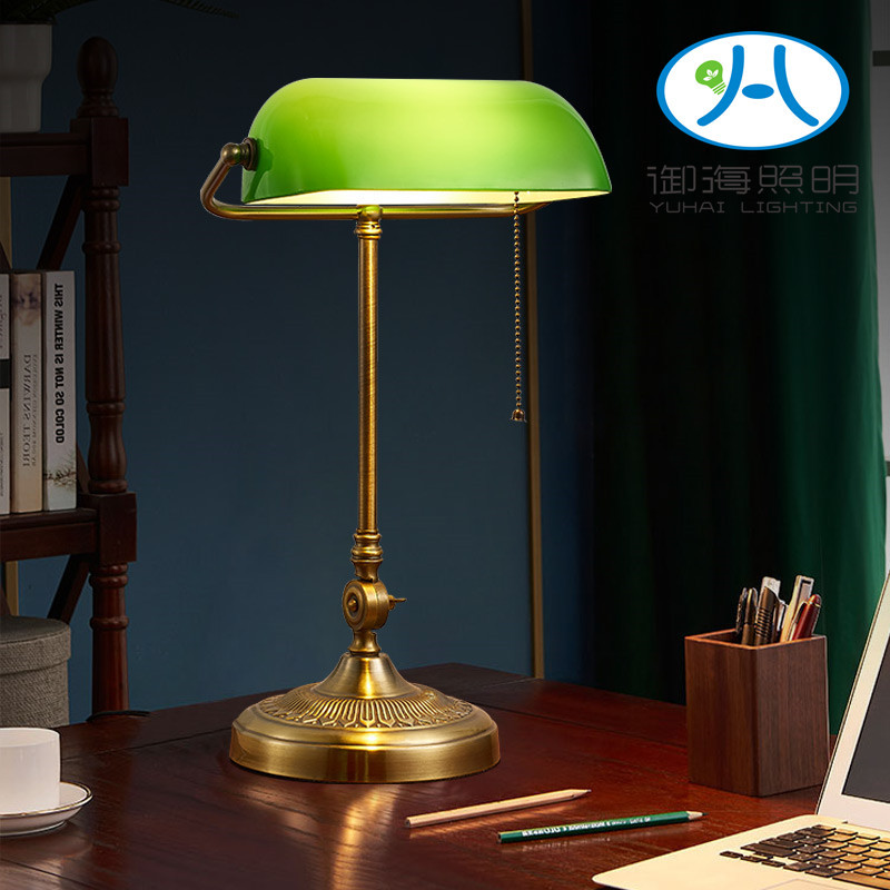 중화민국 스타일의 순동 테이블 램프, 침실 침대 옆 램프, 앤티크 서재, 클래식 독서 및 글쓰기 램프, 순동 레트로 램프스토어 가기