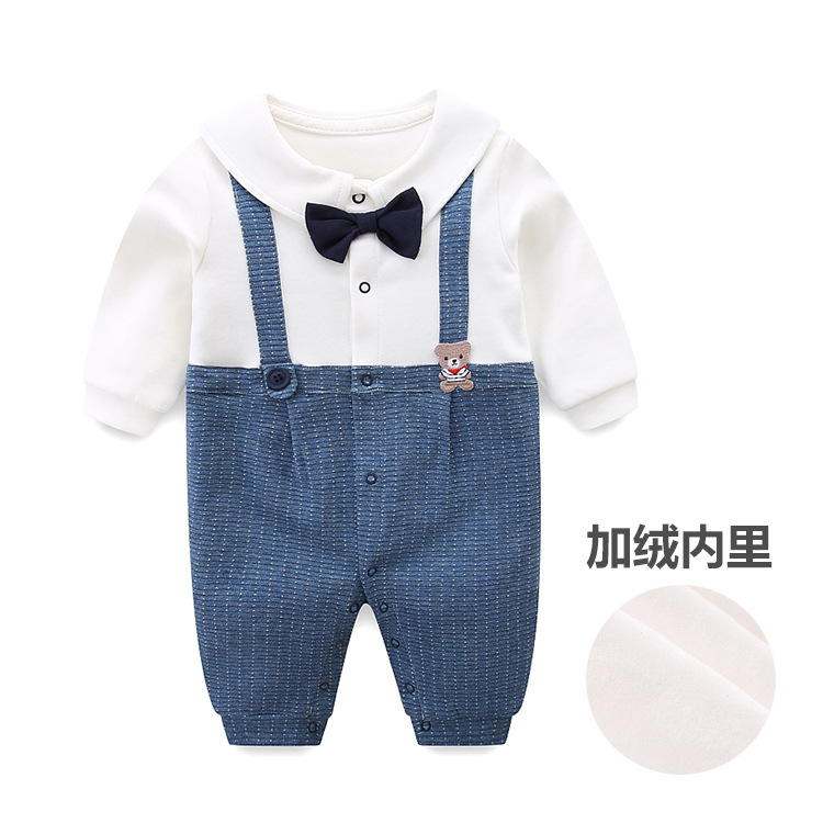 겨울 신상 남아용 원피스 체크무늬 아기 신생아용 플러스 벨벳 두꺼운 보온복 2506
