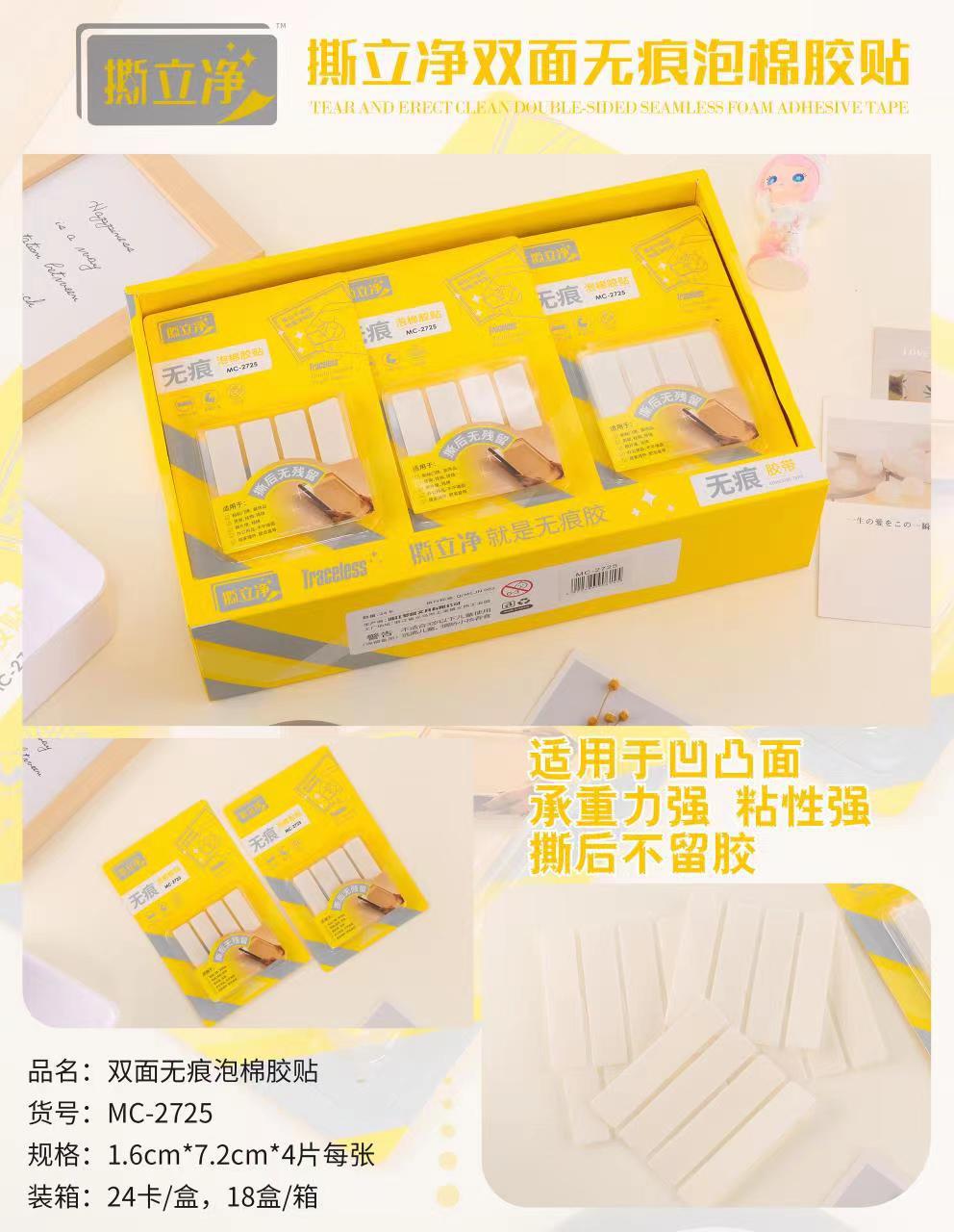 温馨提示:标价为单卡价格,本品为无痕双面胶,意思就是粘贴后撕下来无胶残留在被粘的物体上,免去了普通双面胶粘贴后胶渍残留不好清理的烦恼,广泛应用于电梯广告粘贴,户外广告粘贴,海报粘贴,春联粘贴等场景,是您高品质粘贴的理想选择之一