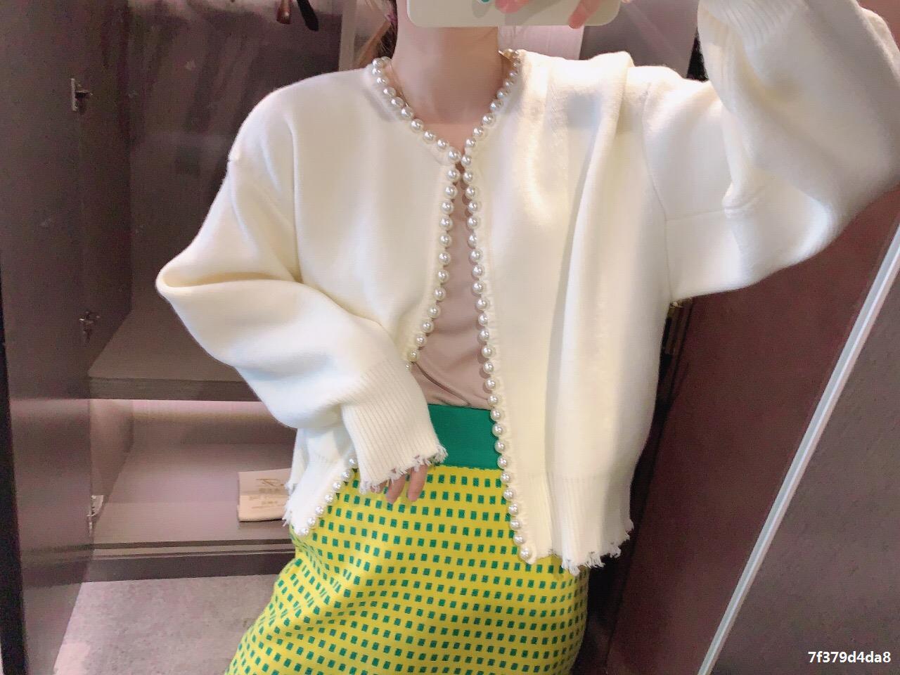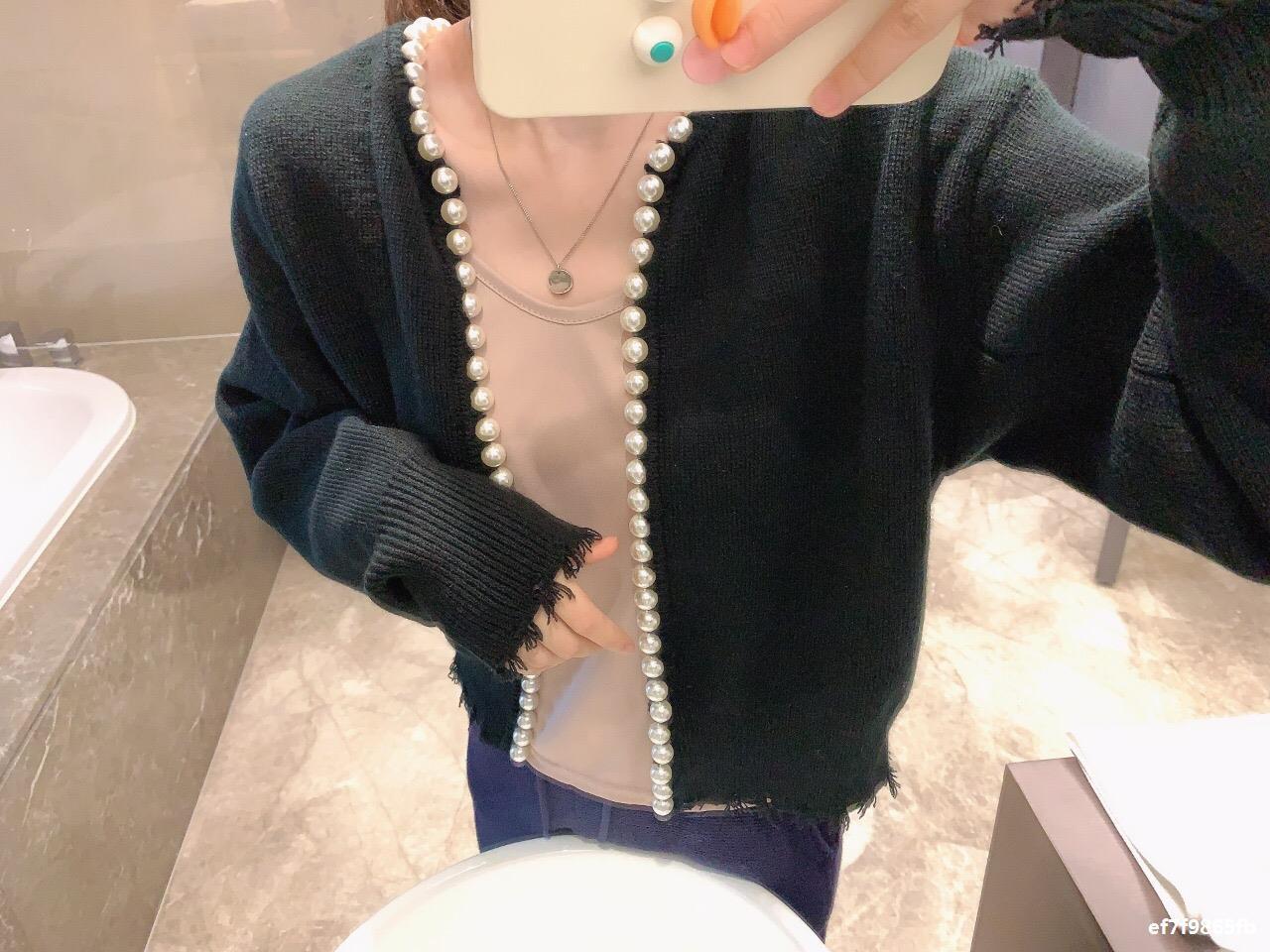 여성을위한 가을, 겨울 새로운 스타일 프랑스 스타일 복고풍 진주 니트 카디건 불규칙한 원시 가장자리 짧은 스웨터 재킷스토어 가기