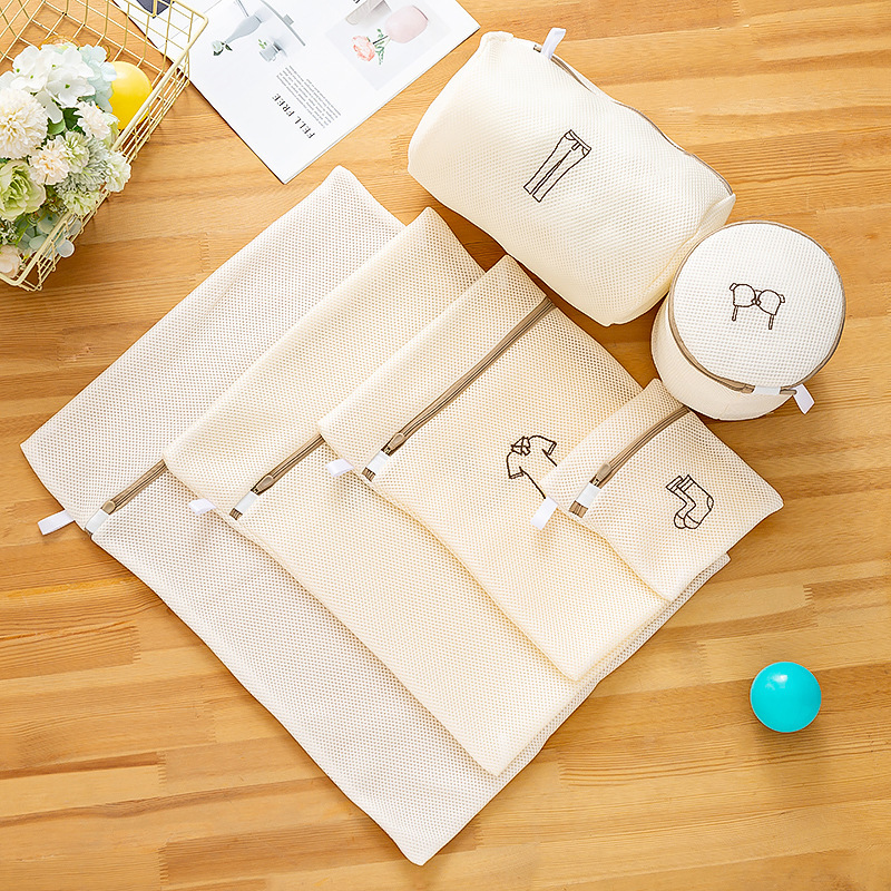 샌드위치 자수 세탁 가방 세트 가정용 세탁 보호 세탁 가방 두꺼운 메쉬 베이지 두꺼운 브래지어 가방 도매스토어 가기