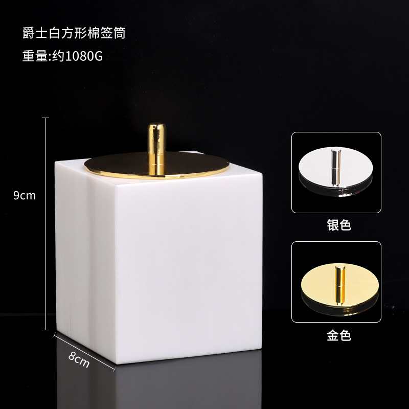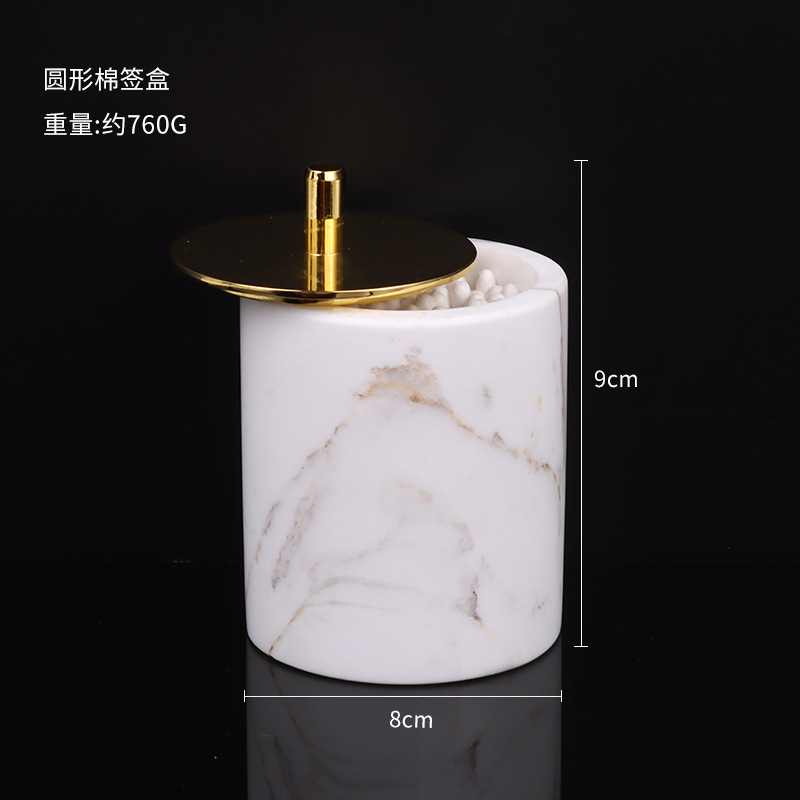 • 재즈 화이트 대리석 면봉 상자 (원형)
