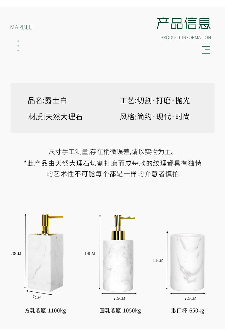 • 재즈 화이트 대리석 로션 보틀 (스퀘어)
