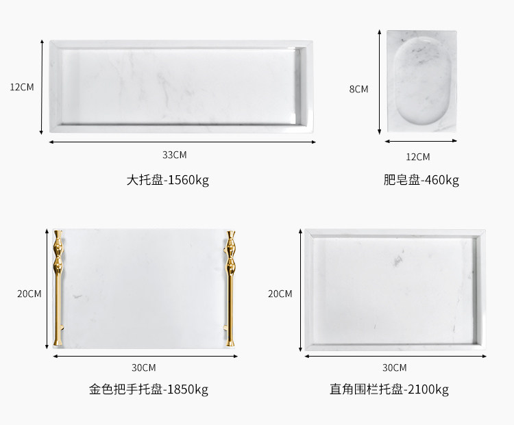 • 재즈 화이트 대리석 핸들 트레이