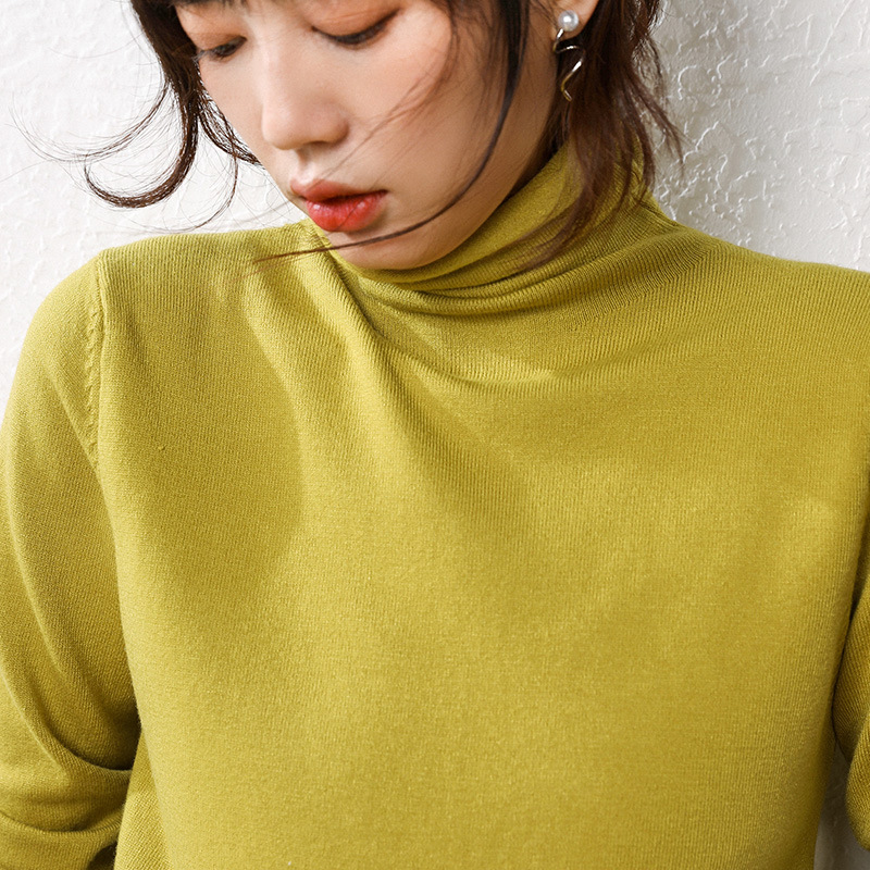 가을과 겨울 새로운 여성용 하이 칼라 한국식 슬림핏 파일 칼라 니트 스웨터 이너 스웨터 코어 회전 원사 베이스 셔츠