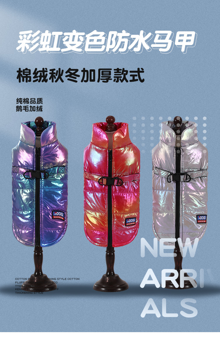 반려동물 의류 방수 반사 그라데이션 색상 조끼 플러스 벨벳 보온 강아지 의류 비숑 반사 디자인스토어 가기