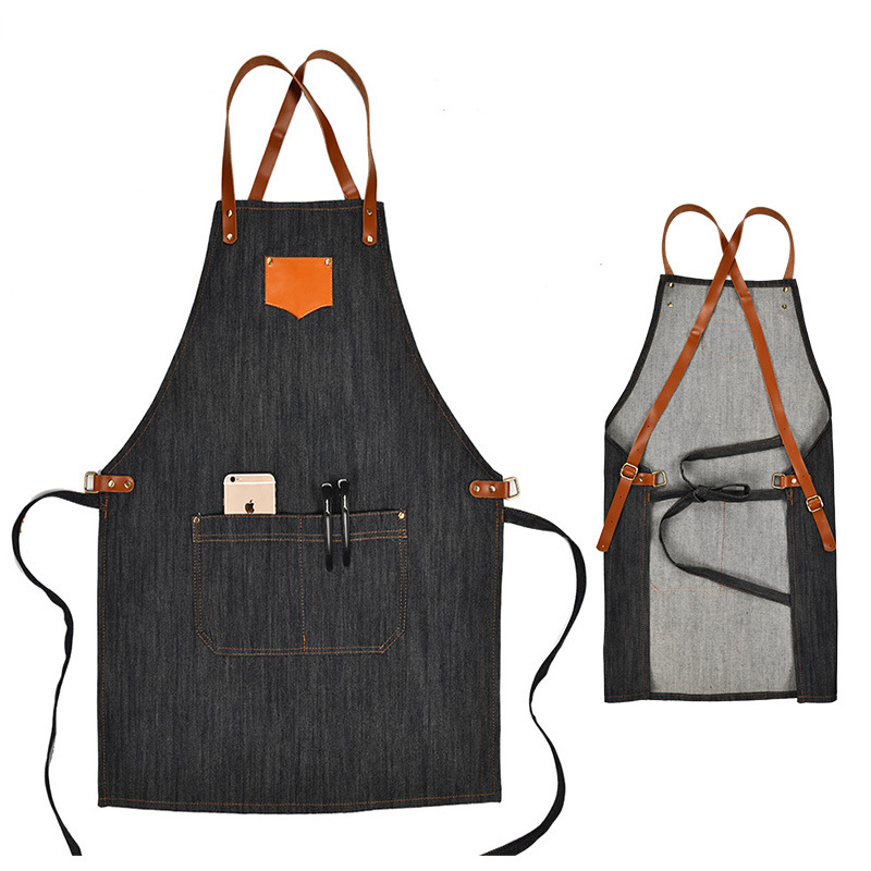 앞치마 여성 데님 인쇄 그림 그림 그림 우유 차 광고 해외 무역 도매 웨이터 어린이 로고스토어 가기