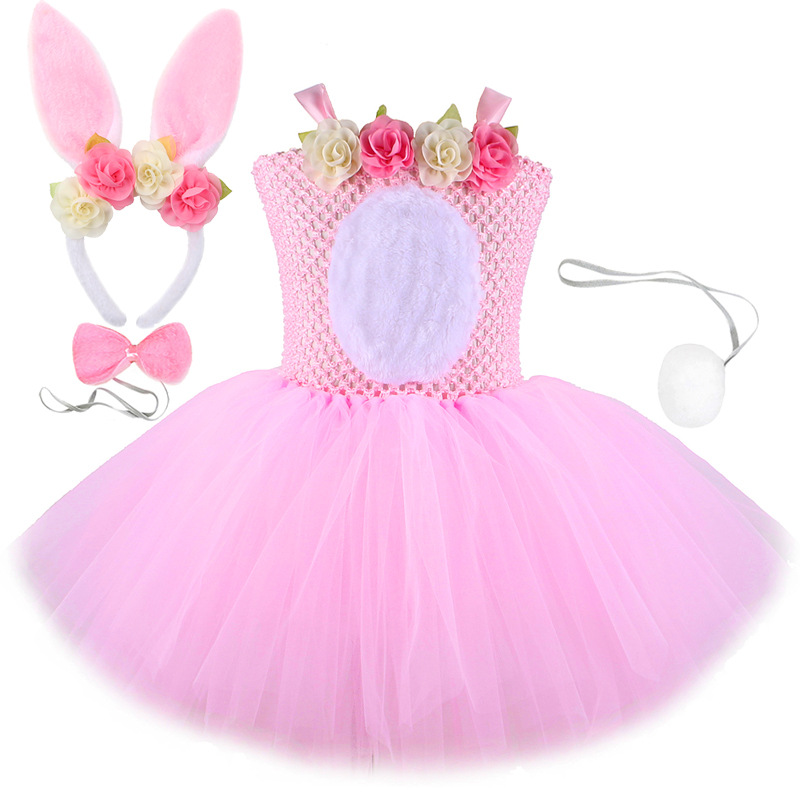 새로운 부활절 토끼 TUTU 원피스 어린이 원피스 꽃 메쉬 TUTU 원피스 소녀 공주 원피스 대외 무역