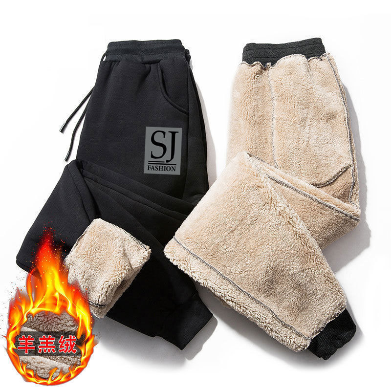 재고 새로운 겨울 기모 캐주얼 바지 남자의 느슨한 두꺼운 스포츠 바지 차가운 따뜻한 발가락 바지 도매