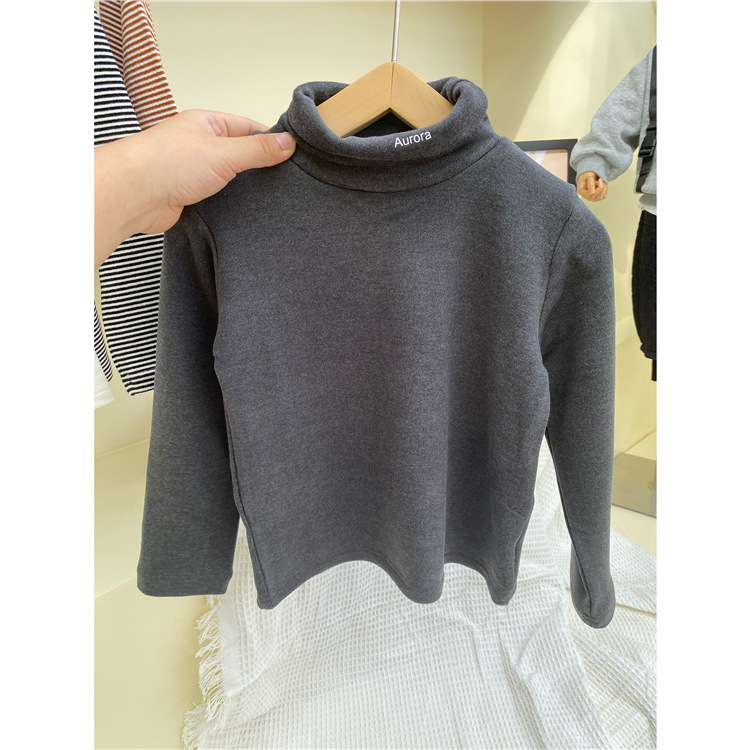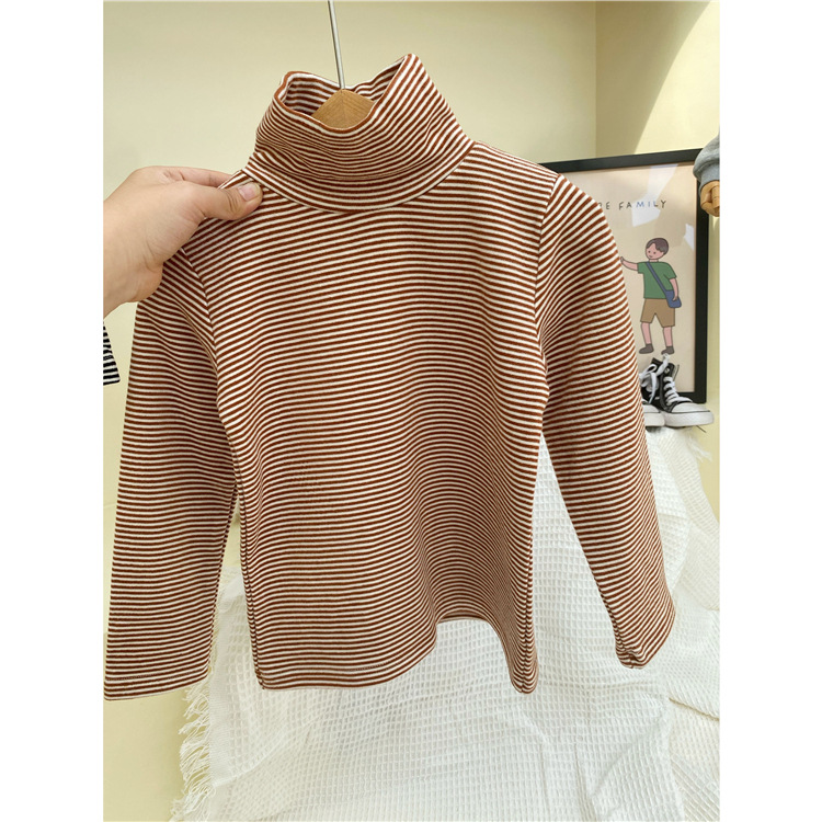 2021 겨울 새로운 어린이 하이 칼라 바닥 셔츠 소년과 소녀 양면 캐시미어 편지 줄무늬 긴 소매 인테리어