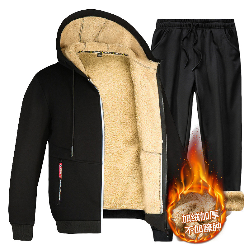 기모 램 벨벳 남자의 후드 스웨터 두꺼운 면 옷 가을과 겨울 남자의 투피스 세트 스포츠 홍콩 스타일 캐주얼웨어스토어 가기