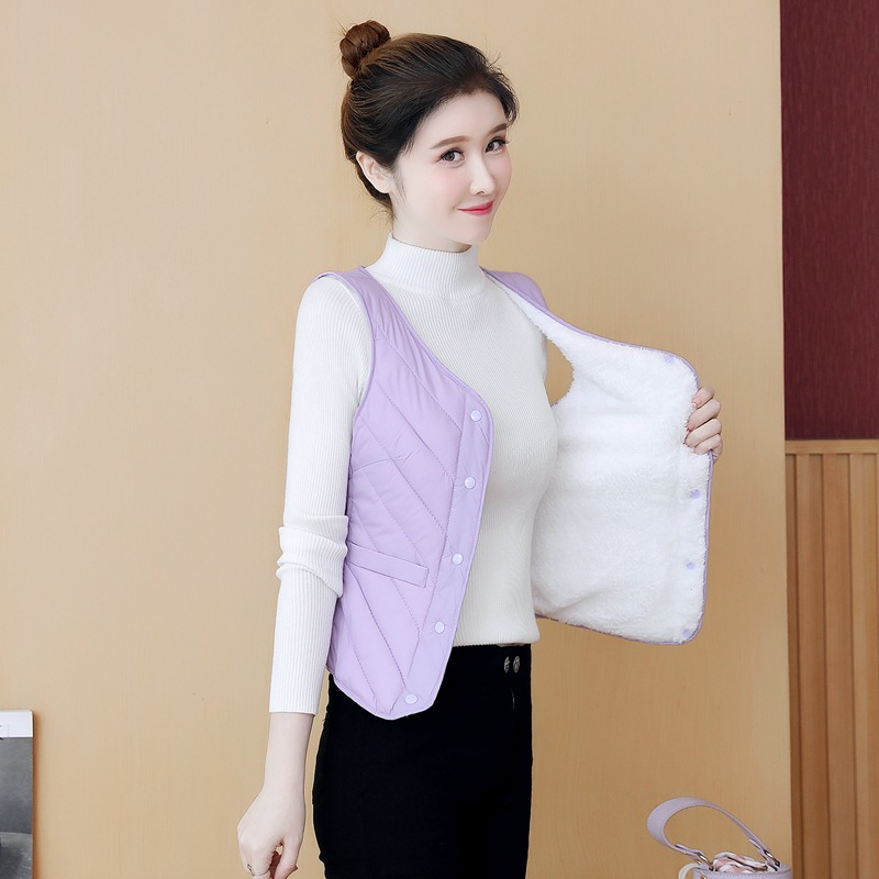 새로운 가을과 겨울 다운 코튼 조끼 여성의 경량 따뜻한 조끼 V-넥 조끼 슬림 핏 기모 조끼 라이너