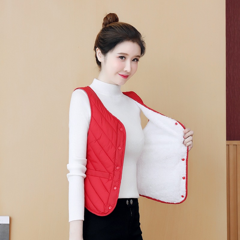 새로운 가을과 겨울 다운 코튼 조끼 여성의 경량 따뜻한 조끼 V-넥 조끼 슬림 핏 기모 조끼 라이너스토어 가기