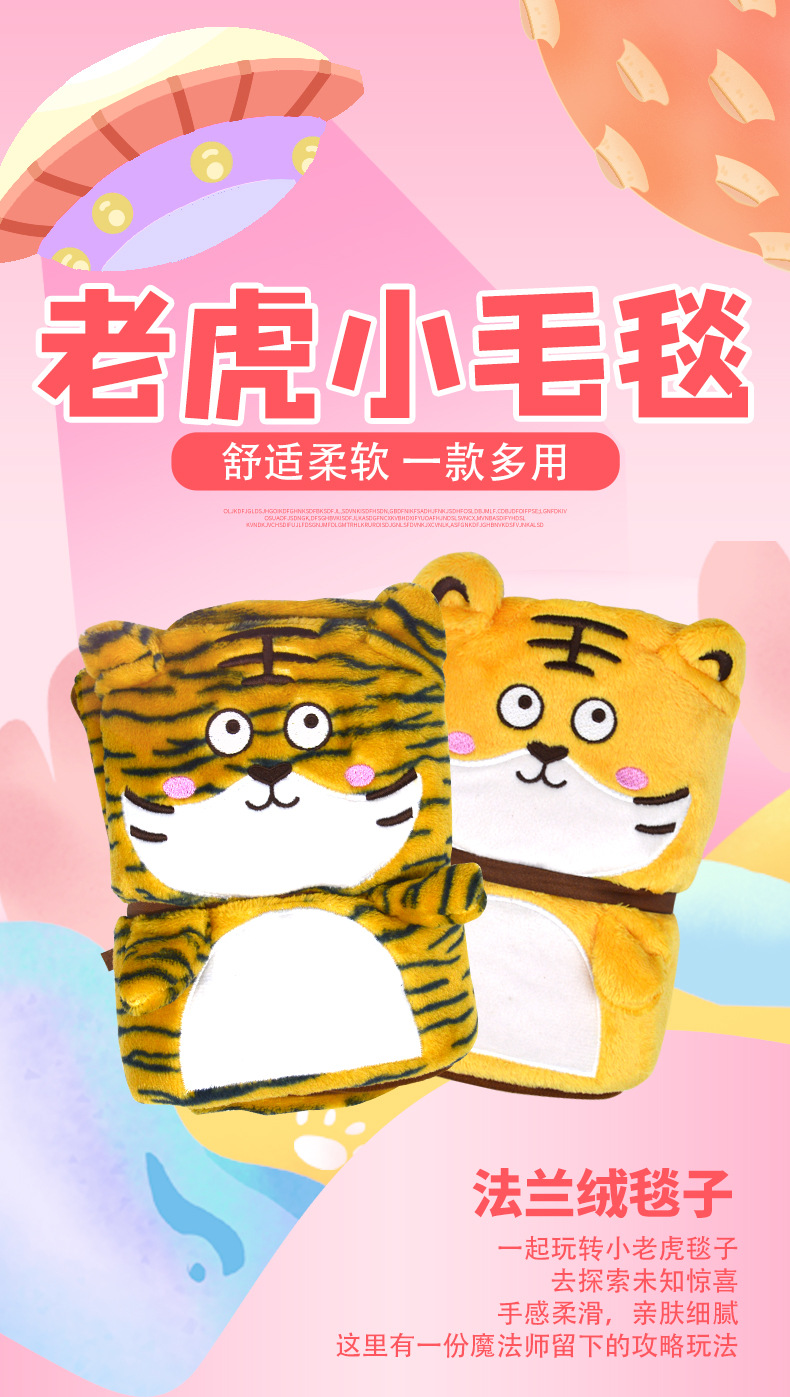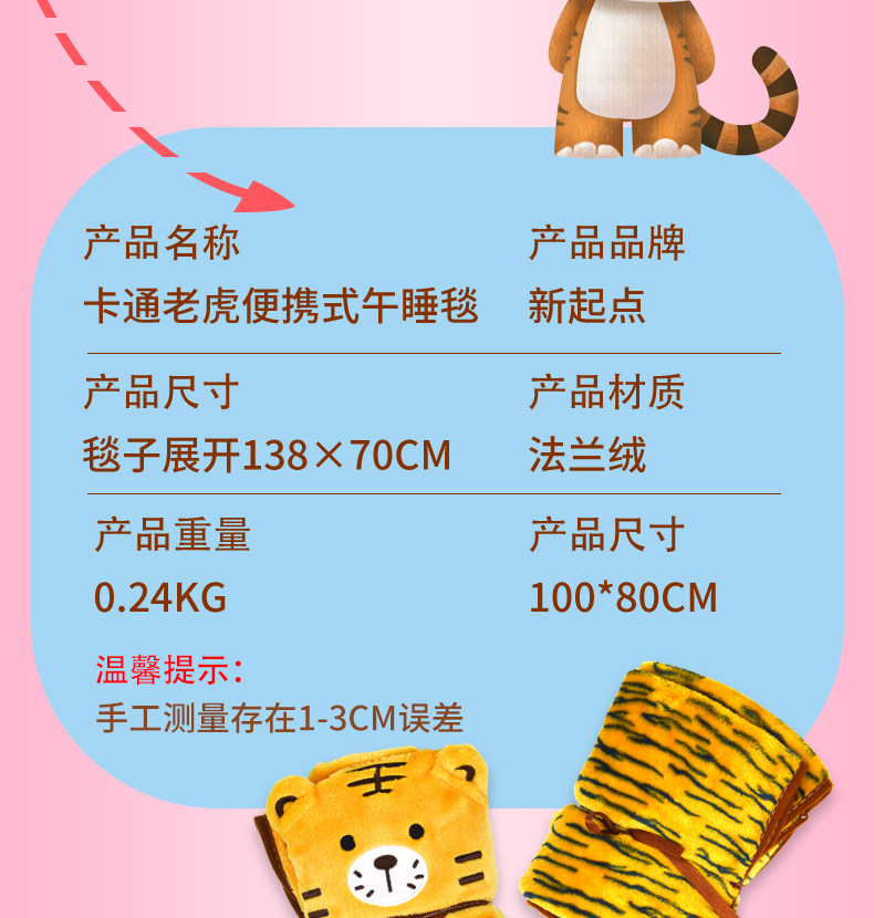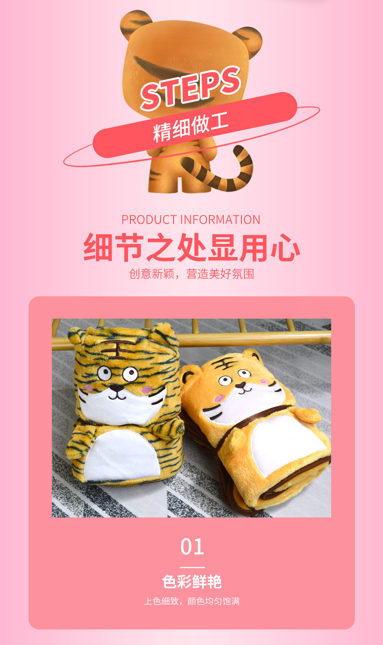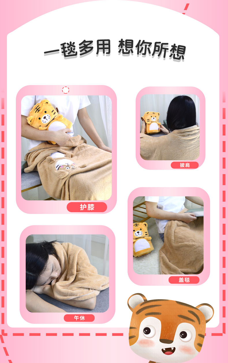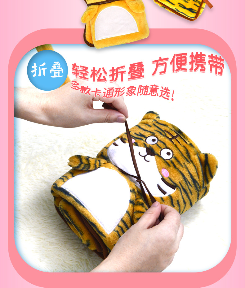 작은 호랑이 만화 담요 차량용 수납 롤 담요 에어컨 이불 아기 담요 회사 행사 작은 선물