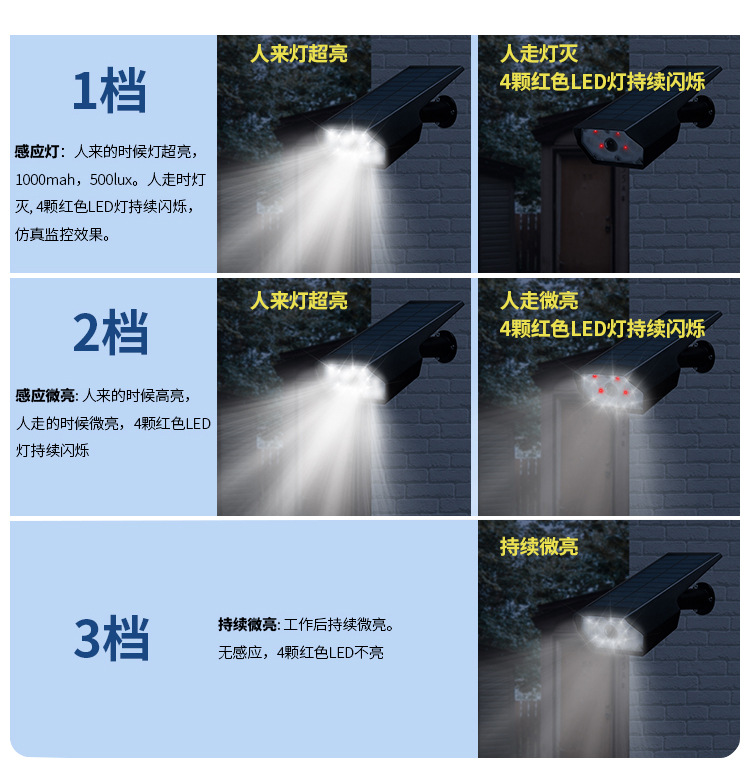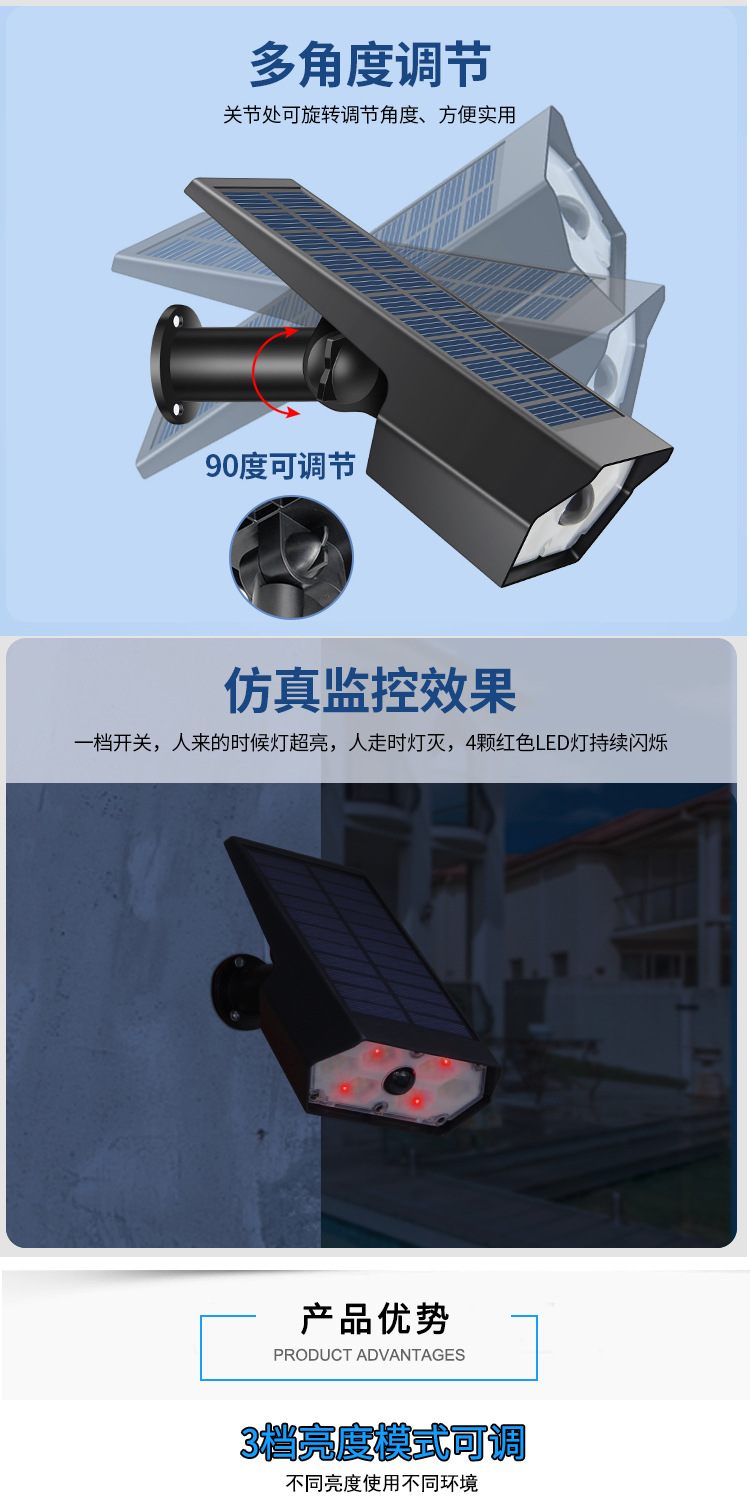 태양 벽 램프 인체 유도 시뮬레이션 모니터링 램프 자동 가정용 야외 도난 방지 원격 제어 방수 정원 램프