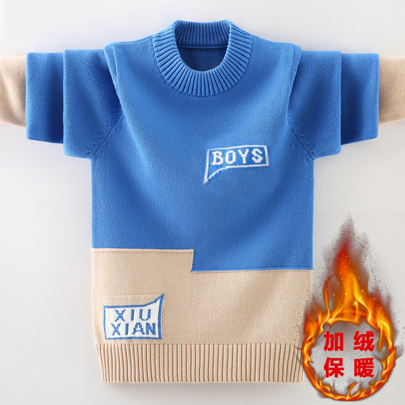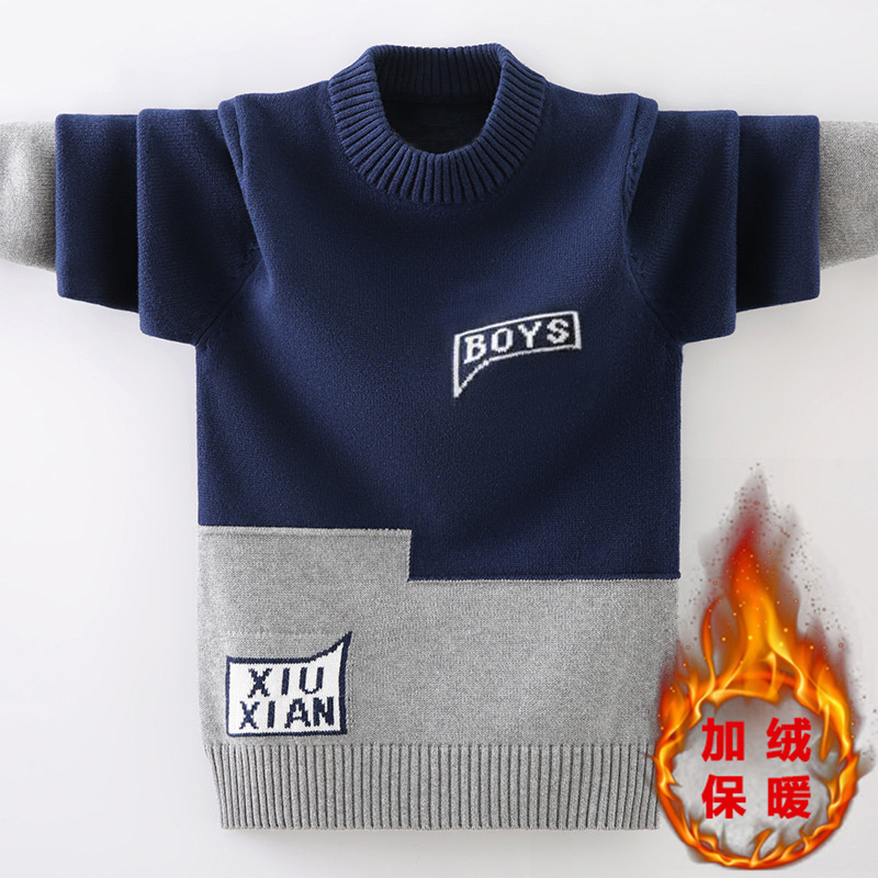 아동복 소년의 가을 스웨터 2022 새로운 중대형 어린이 겨울 착용 기모 두꺼운 소년의 기본 셔츠 한국 패션