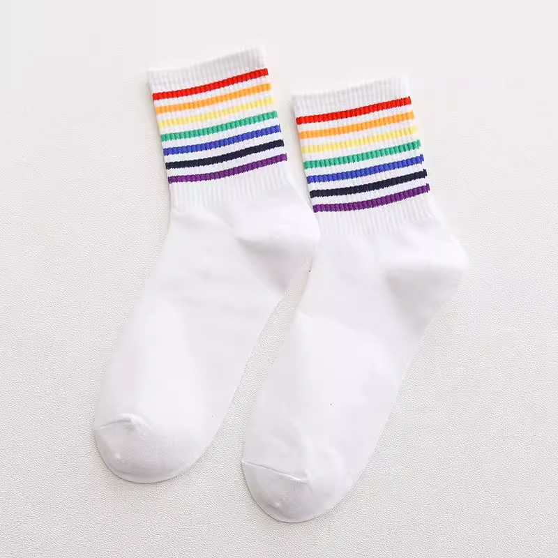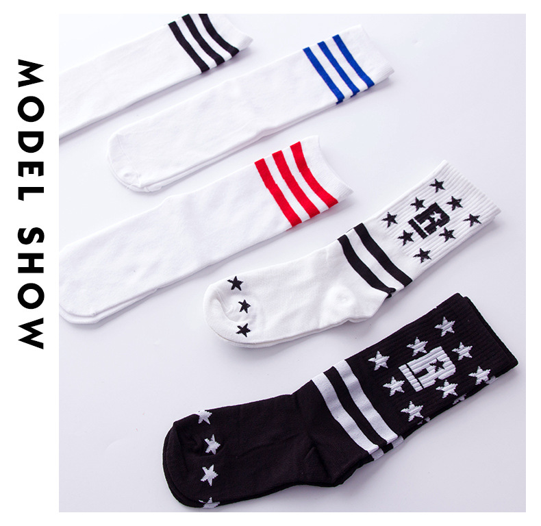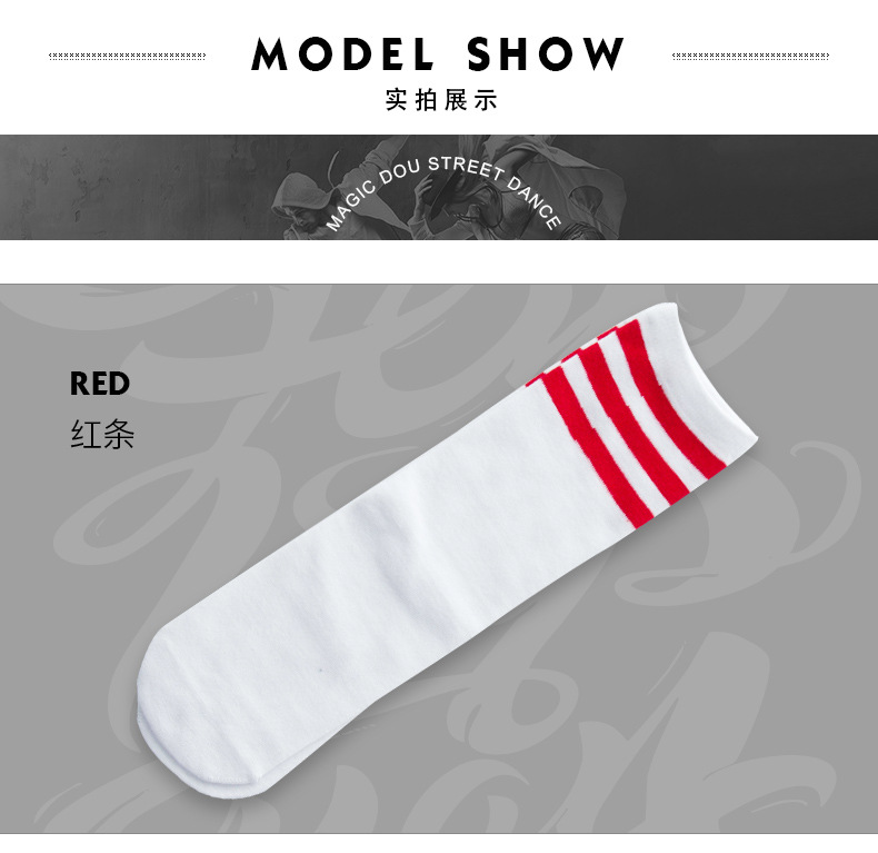 어린이 치어리딩 양말 어린이 아기 힙합 소년과 소녀를위한 트렌디 한 여름 스타킹 색상 접합 중간 길이 스타킹 빨간색과 흰색 스트립스토어 가기