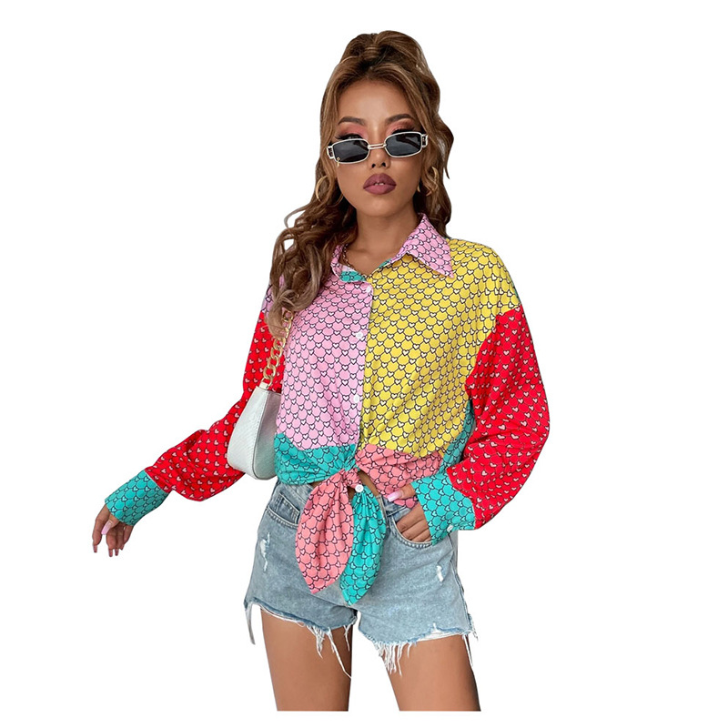 Ins 셔츠 여름 여성 의류 디자인 감각 틈새 기질 셔츠 크로스 보더 인쇄 컬러 복숭아 하트 셔츠 여성 도매