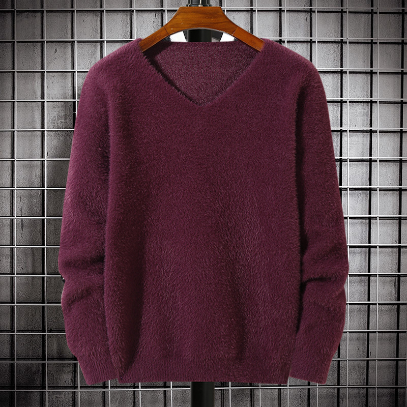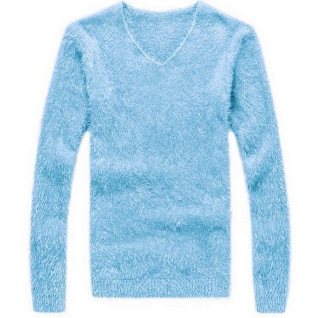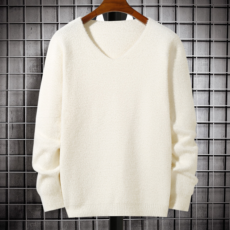 가을과 겨울 새로운 밍크 벨벳 V-넥 얇은 스웨터 남성과 여성은 모조 밍크 게으른 패션 조수 니트베이스 셔츠를 입습니다.스토어 가기
