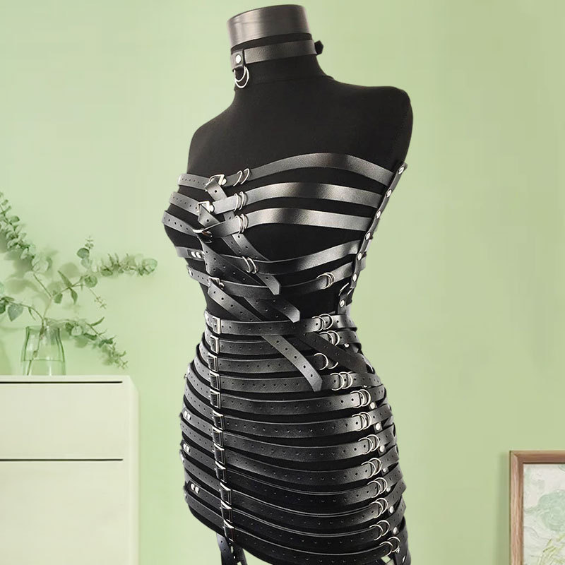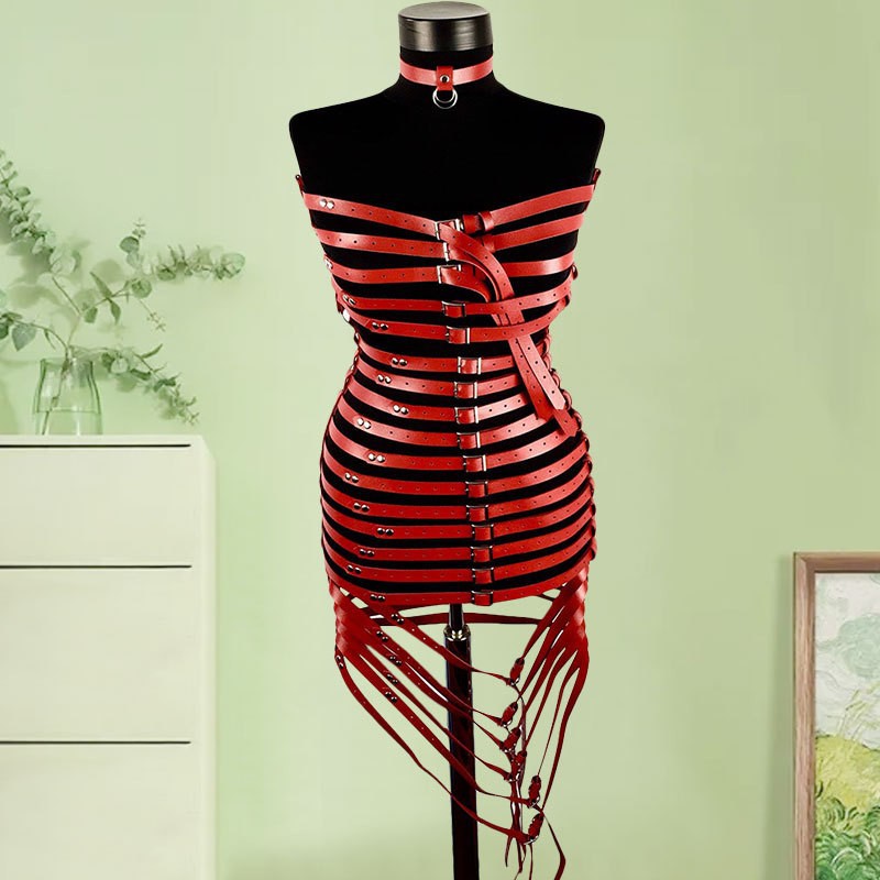 유럽과 미국 스타일의 패션 멀티 레이어 가죽 숄더 스트랩 원피스 슬림 화이트 블랙 레드 멀티 컬러 옵션