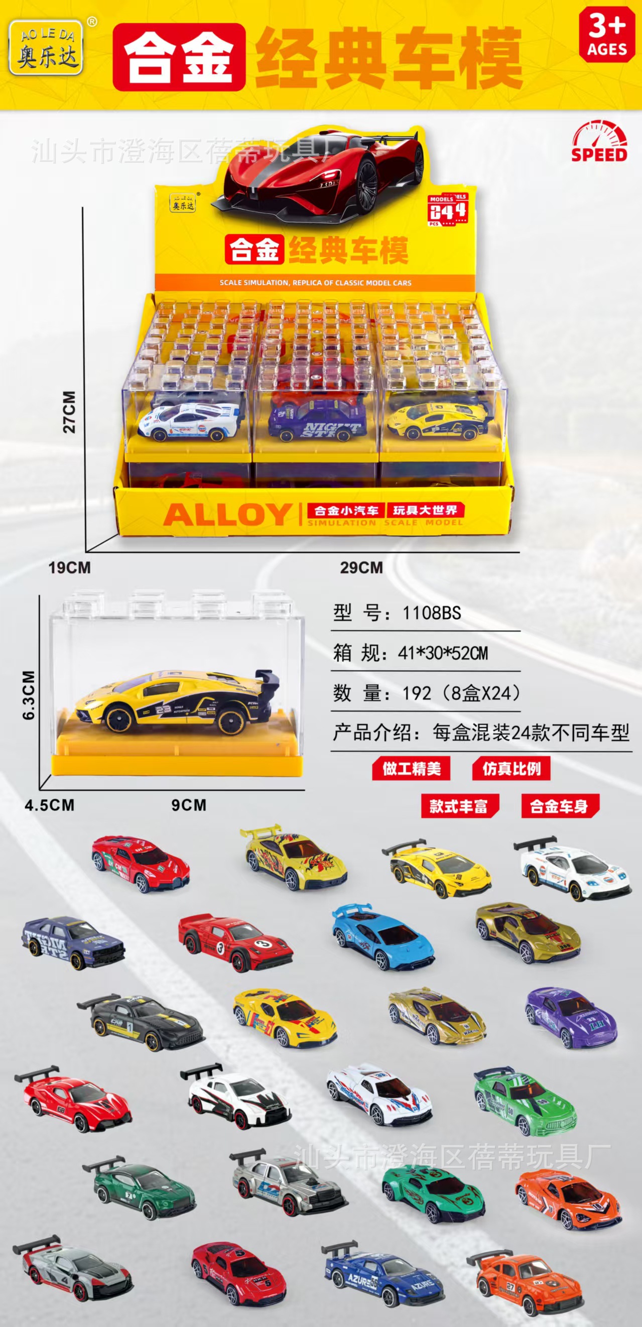 • 1108AS 합금 자동차 아크릴 케이스 포장 [단품 가격, 24개 구매 시 한 세트 발송]