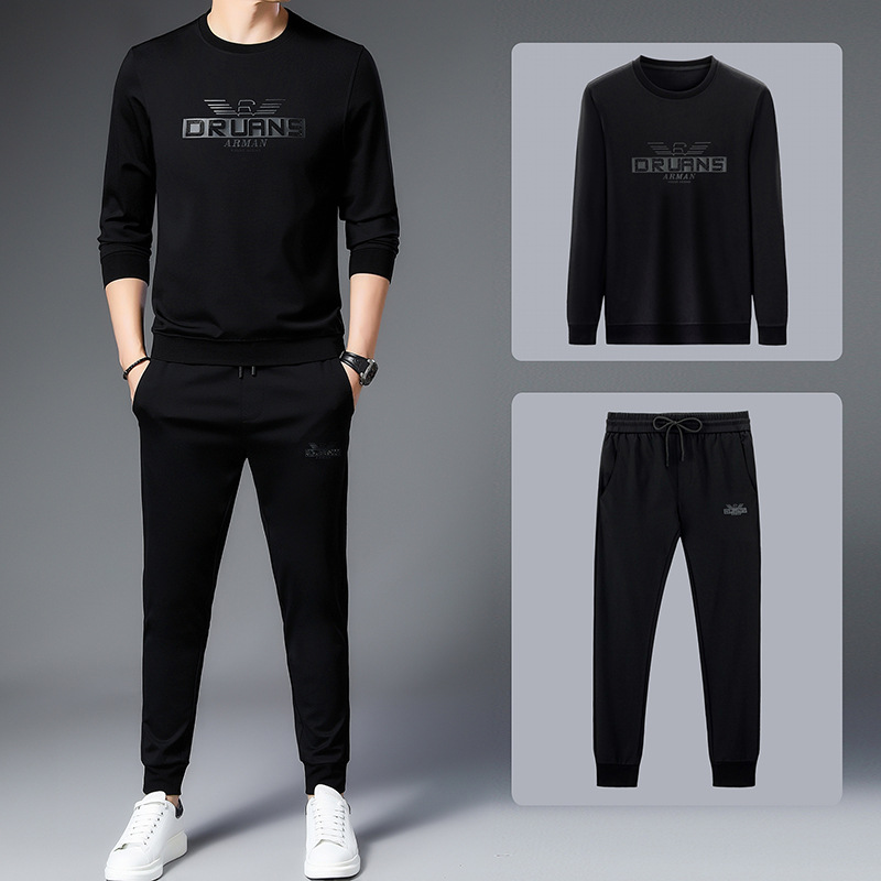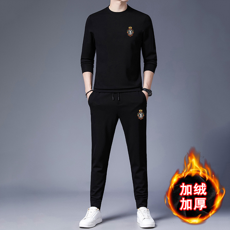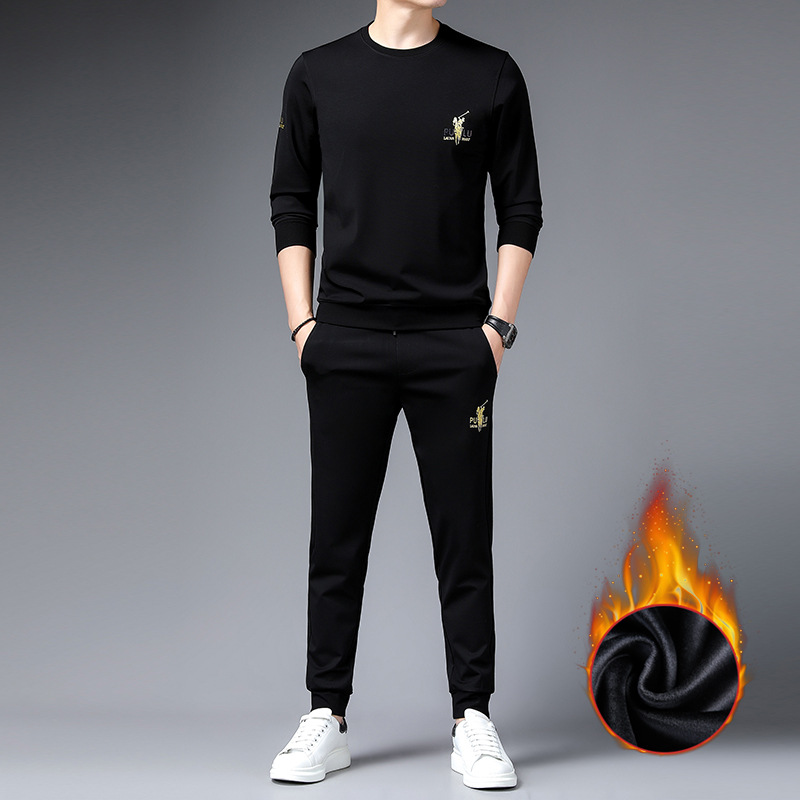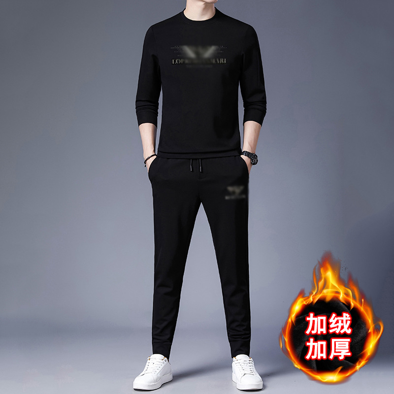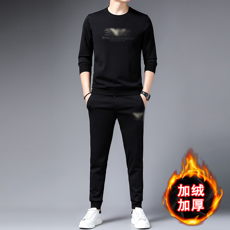 공장 상점 가을/겨울 새로운 세트 남자의 유행 스포츠 캐주얼 긴 소매 기모 두꺼운 스웨터 남자의 투피스 세트스토어 가기